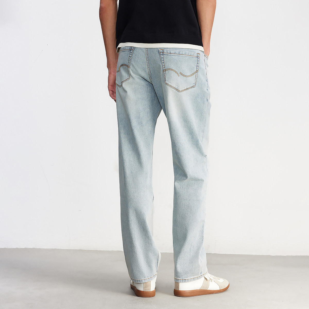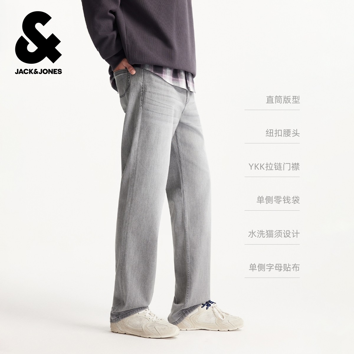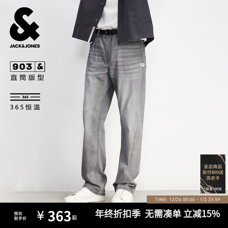 [四季恒温]903杰克琼斯复古直筒宽松猫须水洗牛仔裤长裤子男装