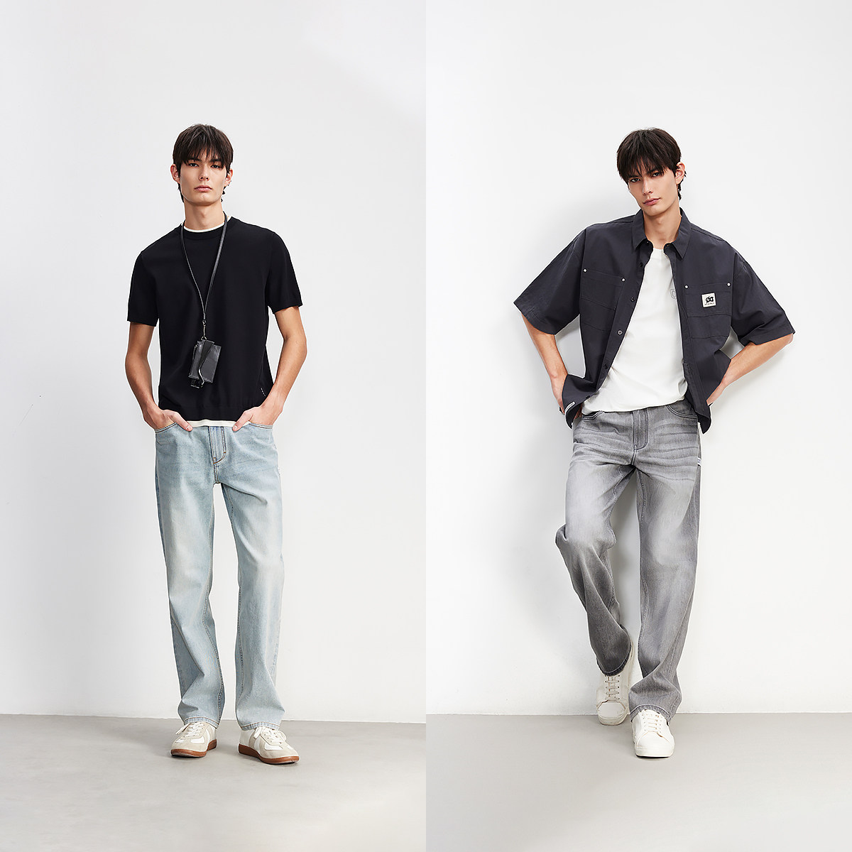 森柔牛仔森马牛仔裤男款2025新直筒裤长裤原色复古美式水洗宽松潮