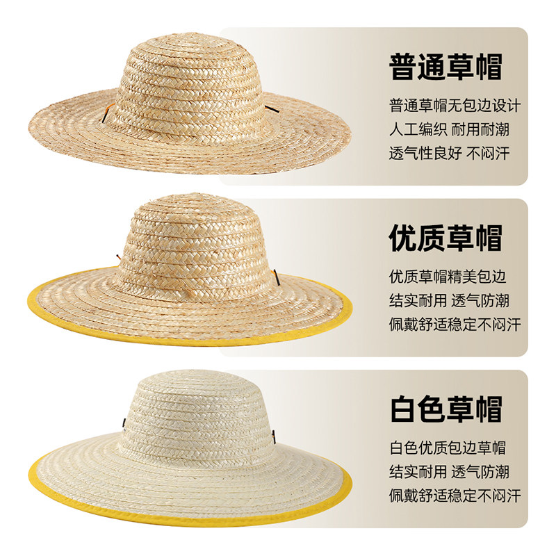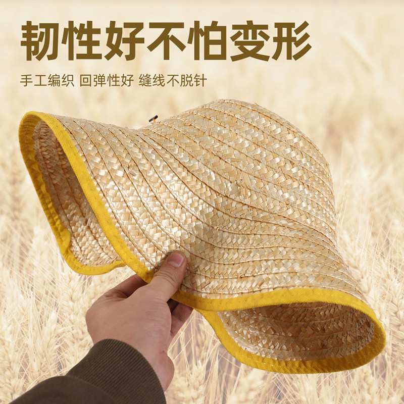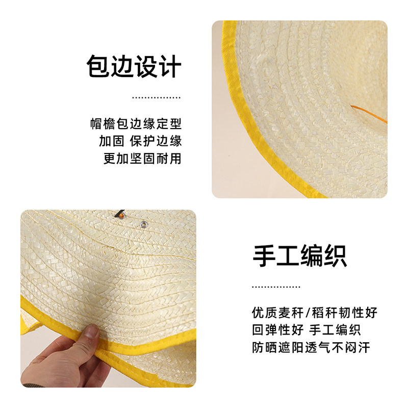 麦秆草帽农民劳保户外遮阳夏防晒工地男儿童钓鱼帽子大帽檐防风
