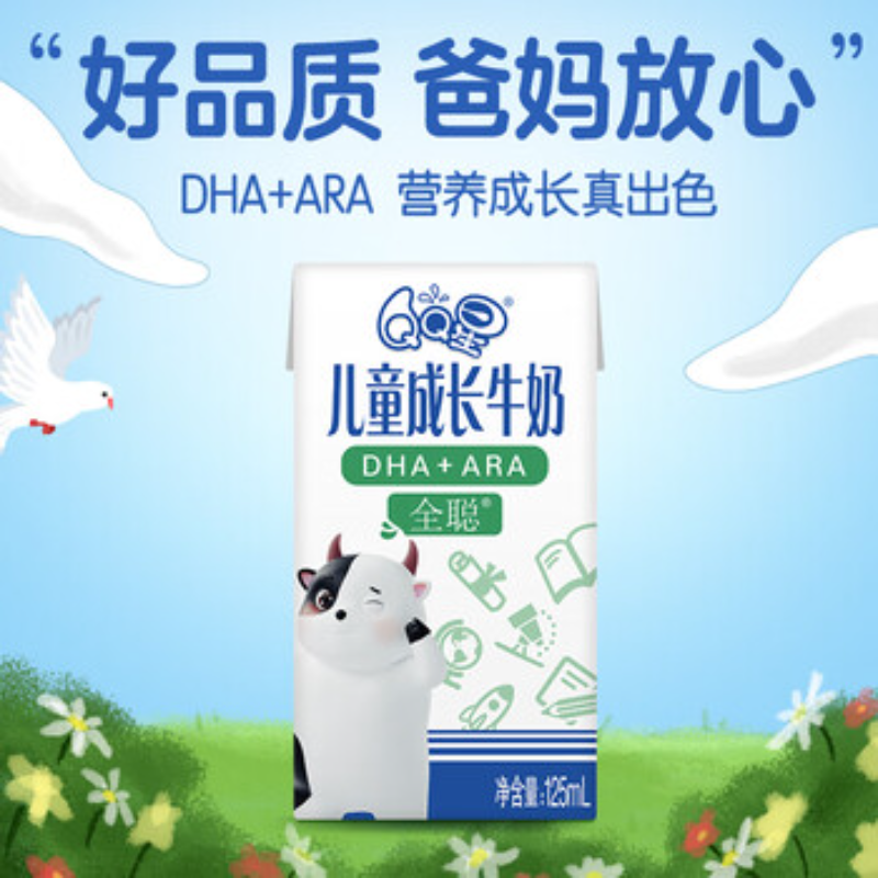 伊利QQ星全聪儿童成长牛奶富含DHA+ARA营养整箱0蔗糖