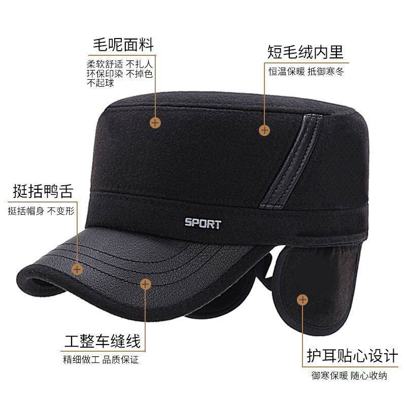 中老年帽子男士冬天爸爸平顶帽护耳老人帽秋冬季保暖爷爷老头棉帽