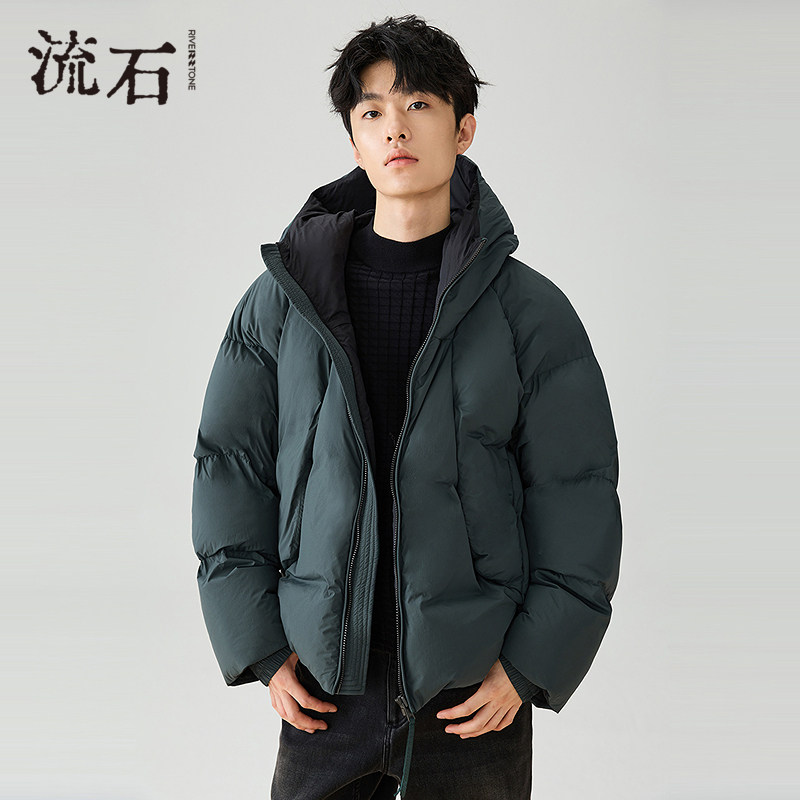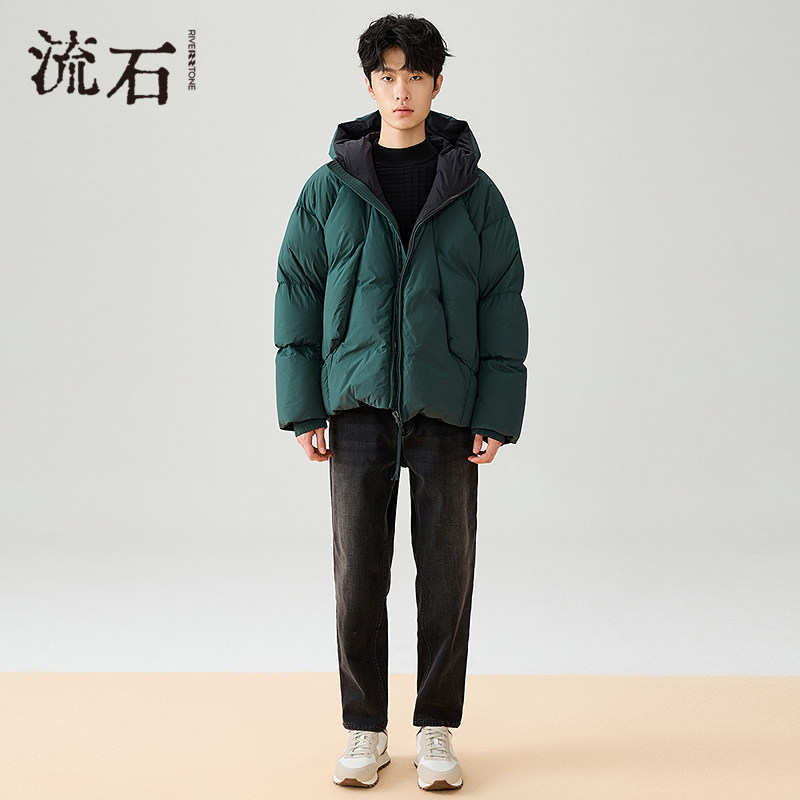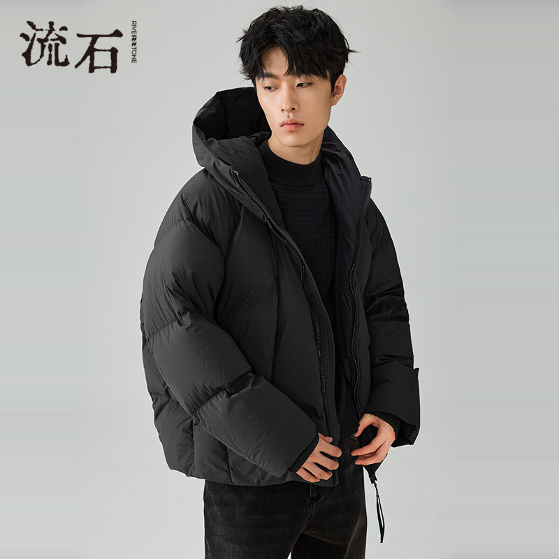 流石男装冬装时尚宽松面包羽绒服2025年冬季新款男士连帽保暖外套