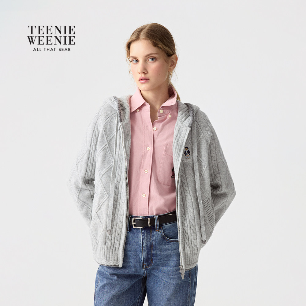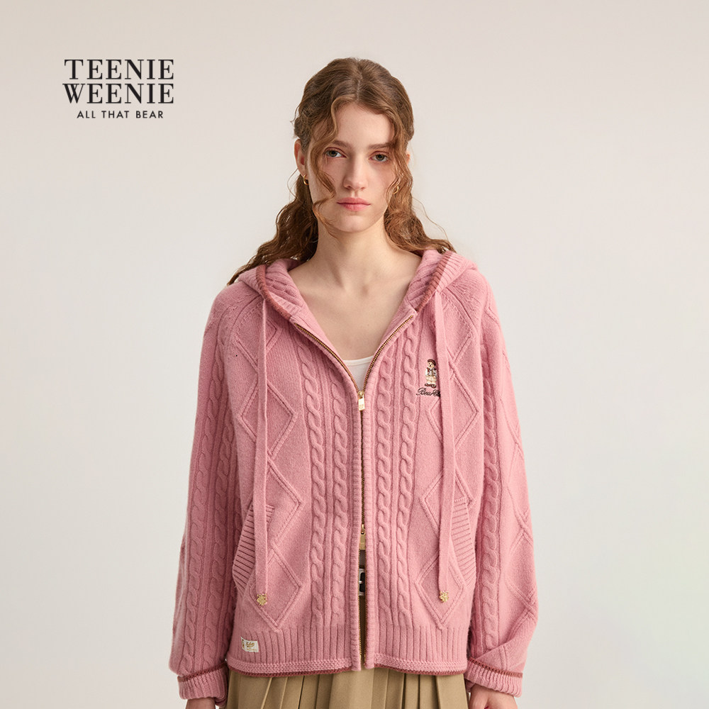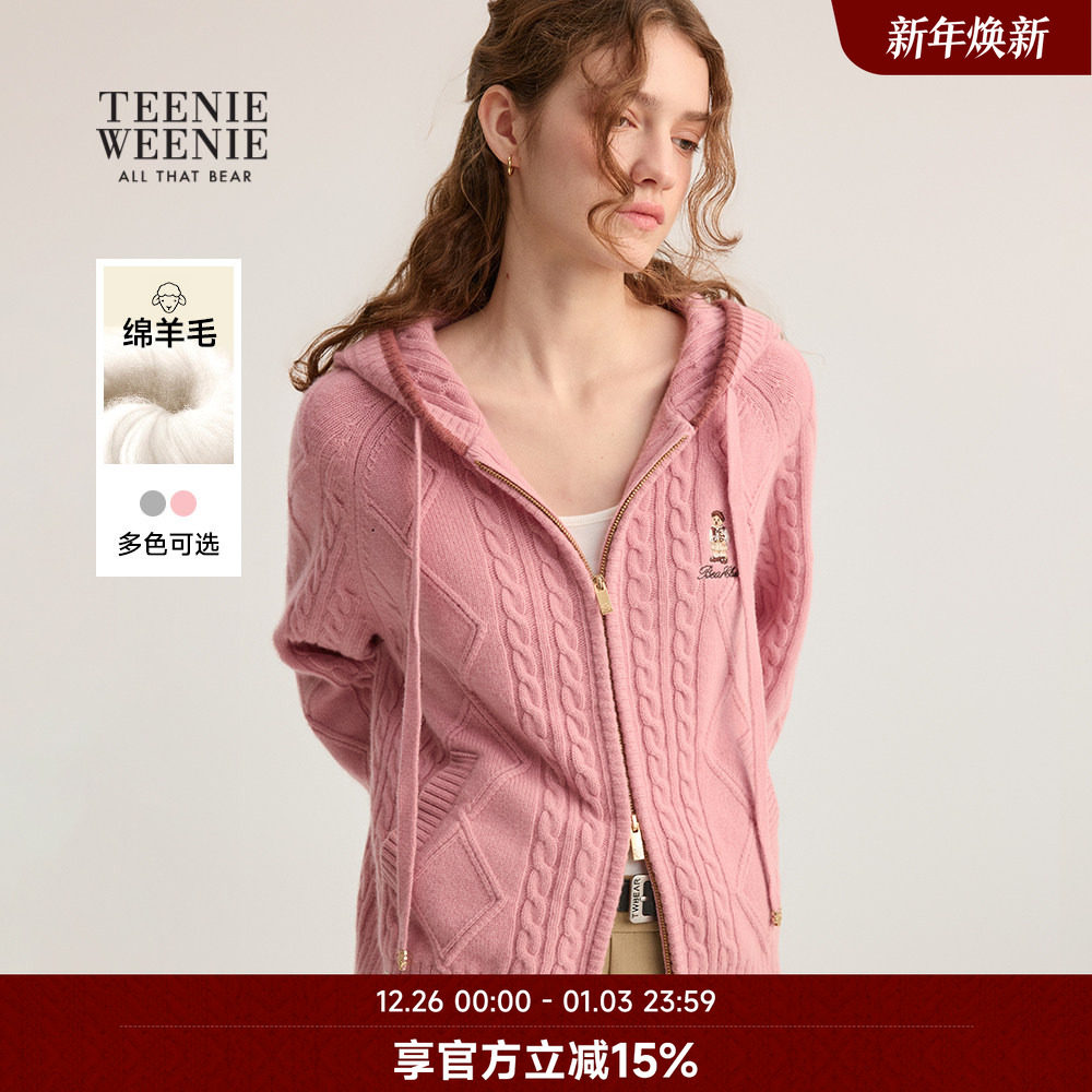 【四季绞花】TeenieWeenie小熊奥莱25秋款绵羊毛针织开衫连帽外套