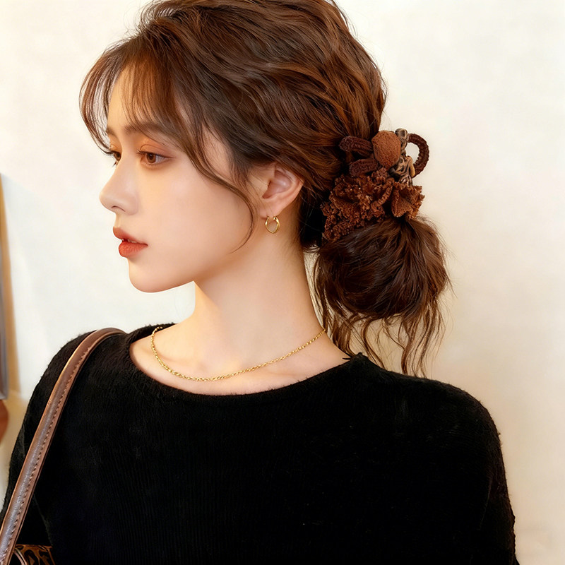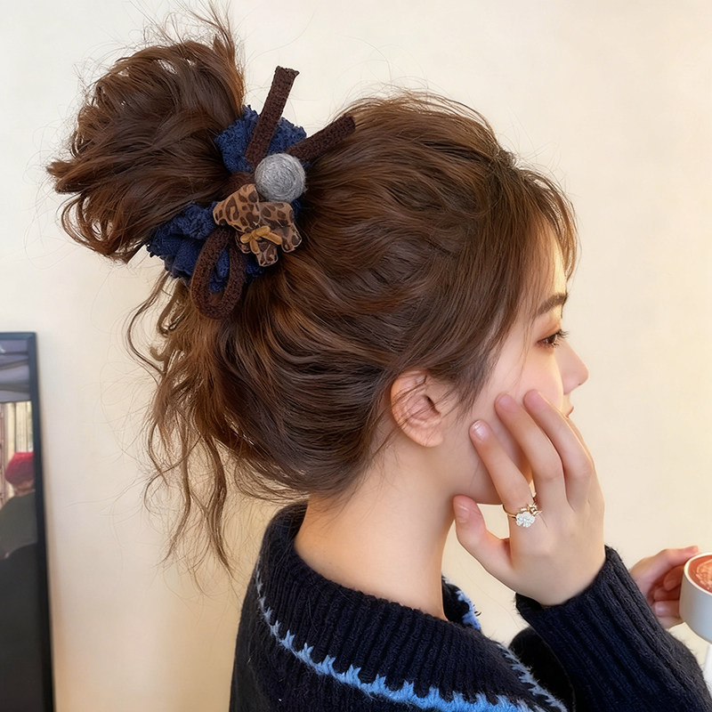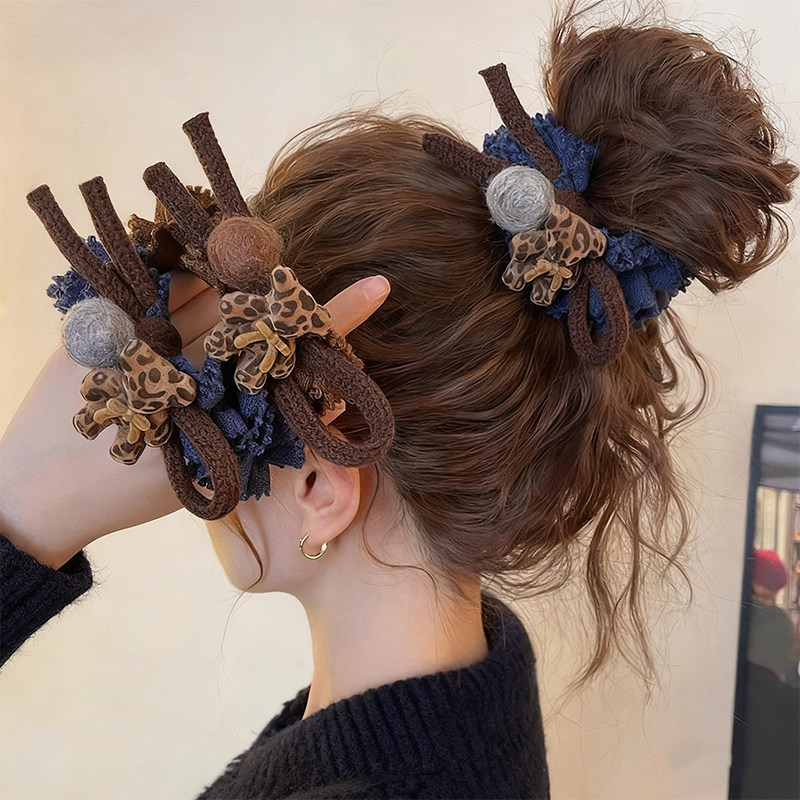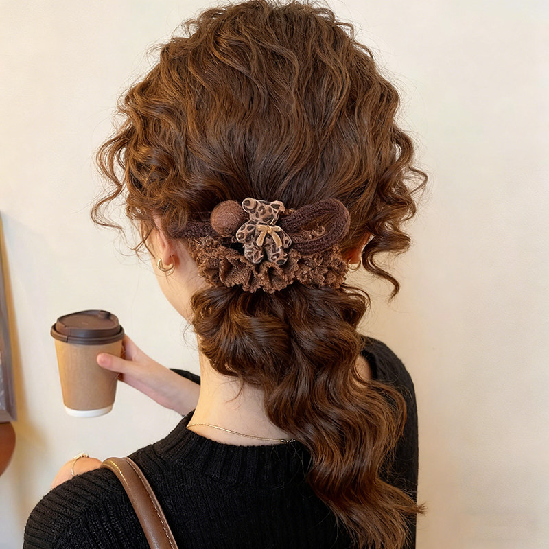 小熊豹纹大肠发圈女高级感头绳低马尾扎发皮筋丸子头发绳秋冬新款