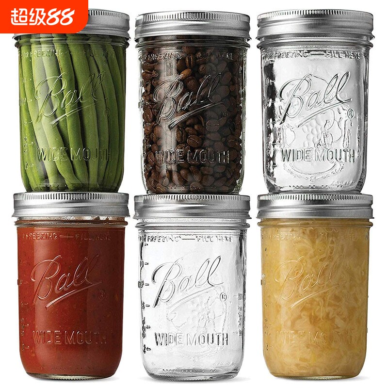 Ball Mason Jar美式梅森罐玻璃透明燕麦密封罐厨房果酱瓶储物罐