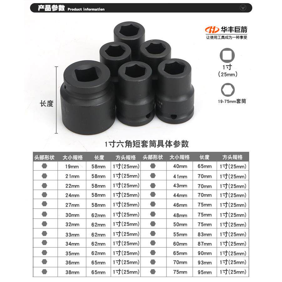 1寸重型风炮气动外六角套筒扳手风动大风炮六角套筒头6角套筒工具