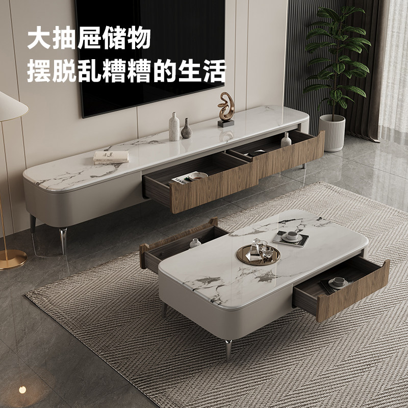 微晶石茶几电视柜组合家用小户型现代简约高级轻奢长方形储物茶几