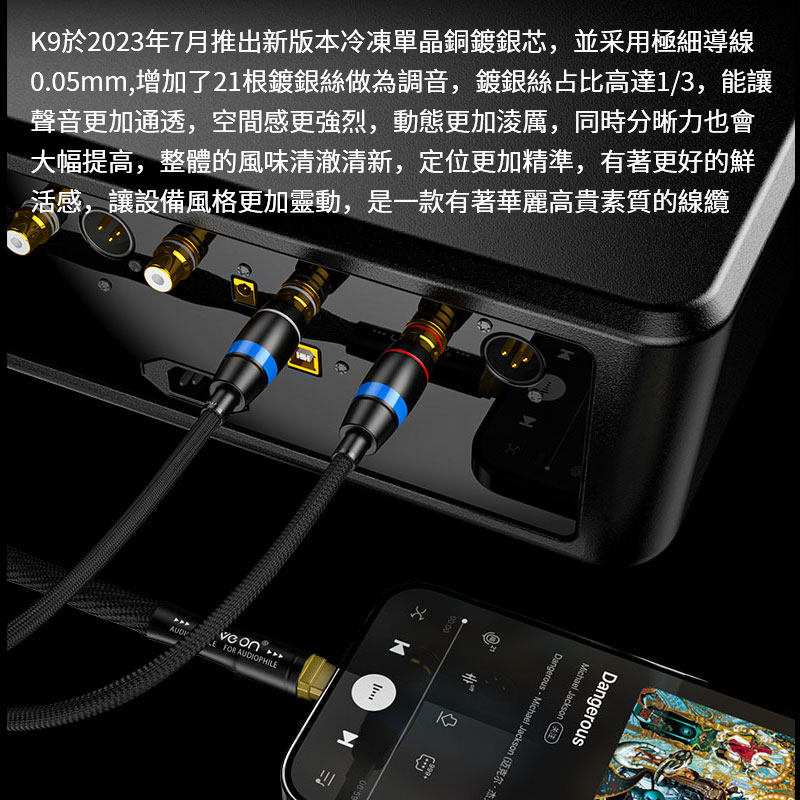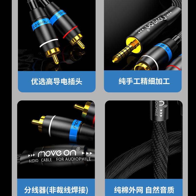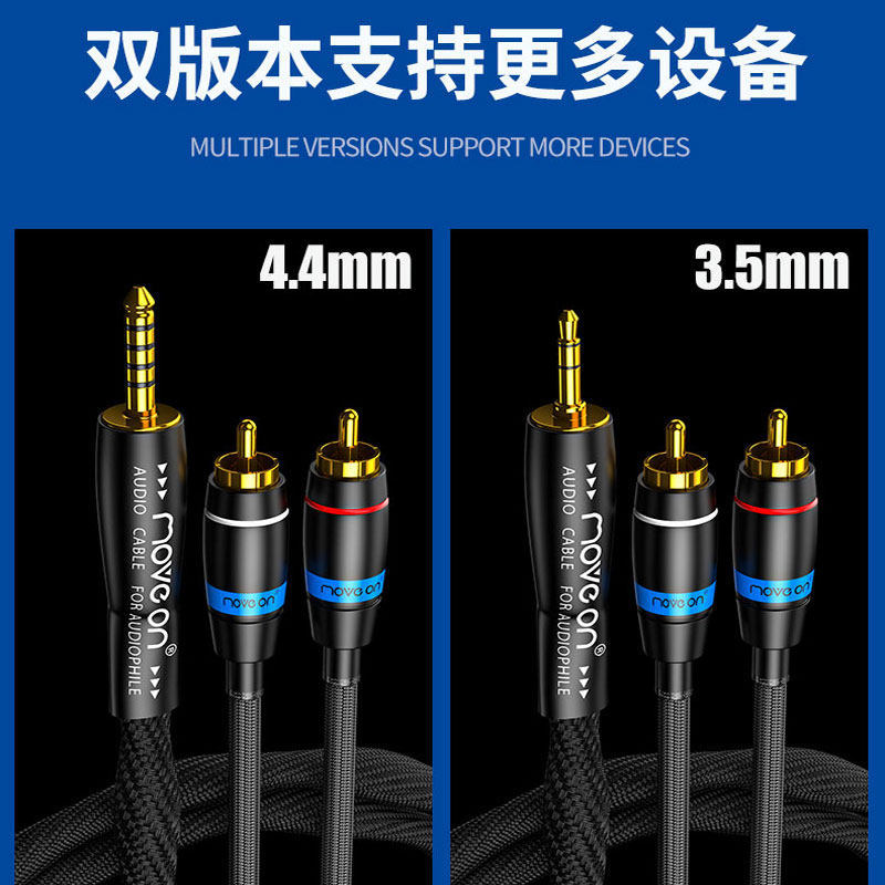 K9牧风冷冻单晶铜镀银4.4mm平衡3.5mm转RCA双莲花头一分二音频线