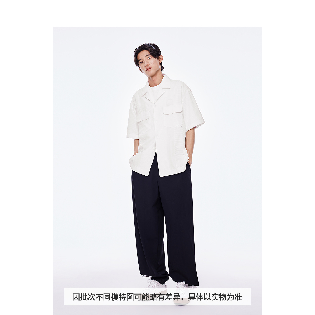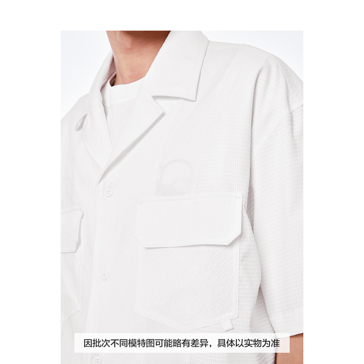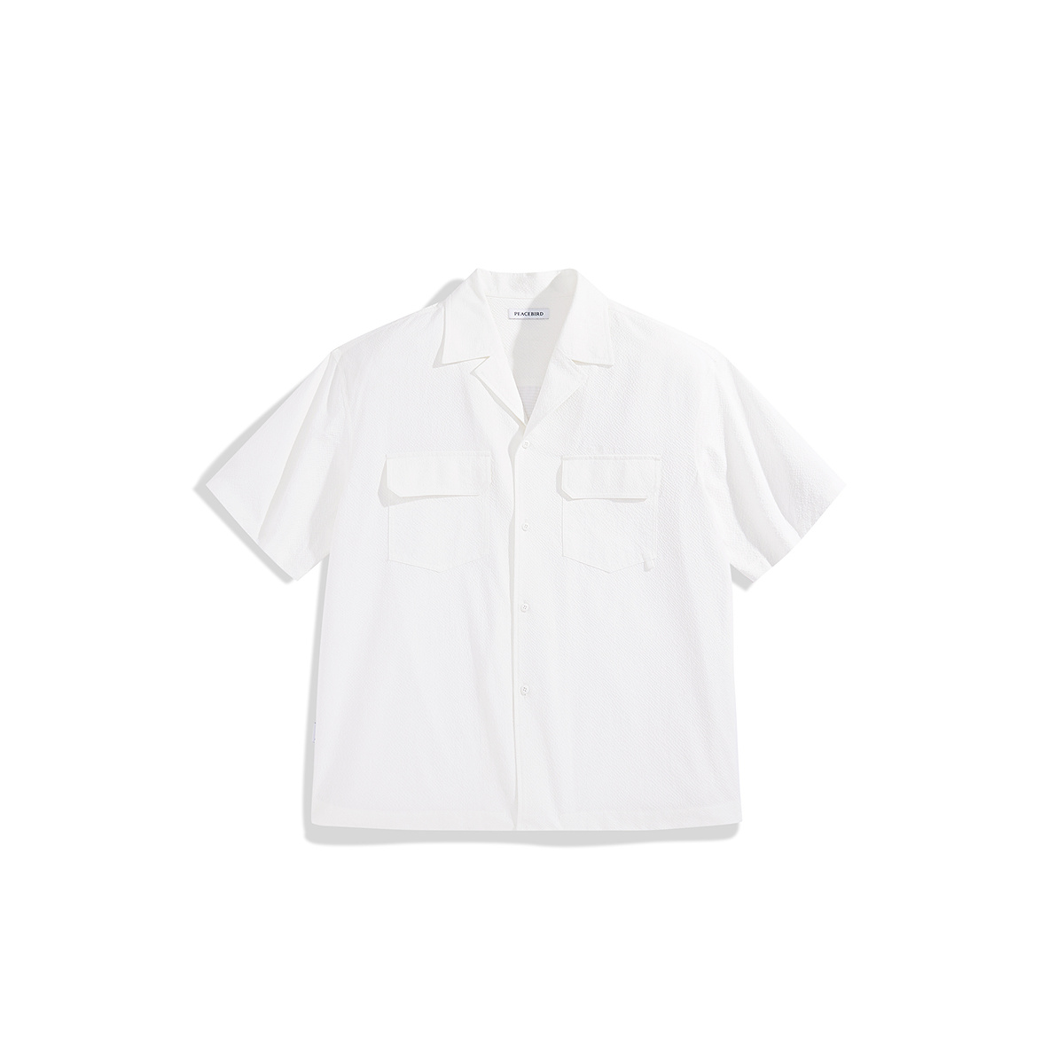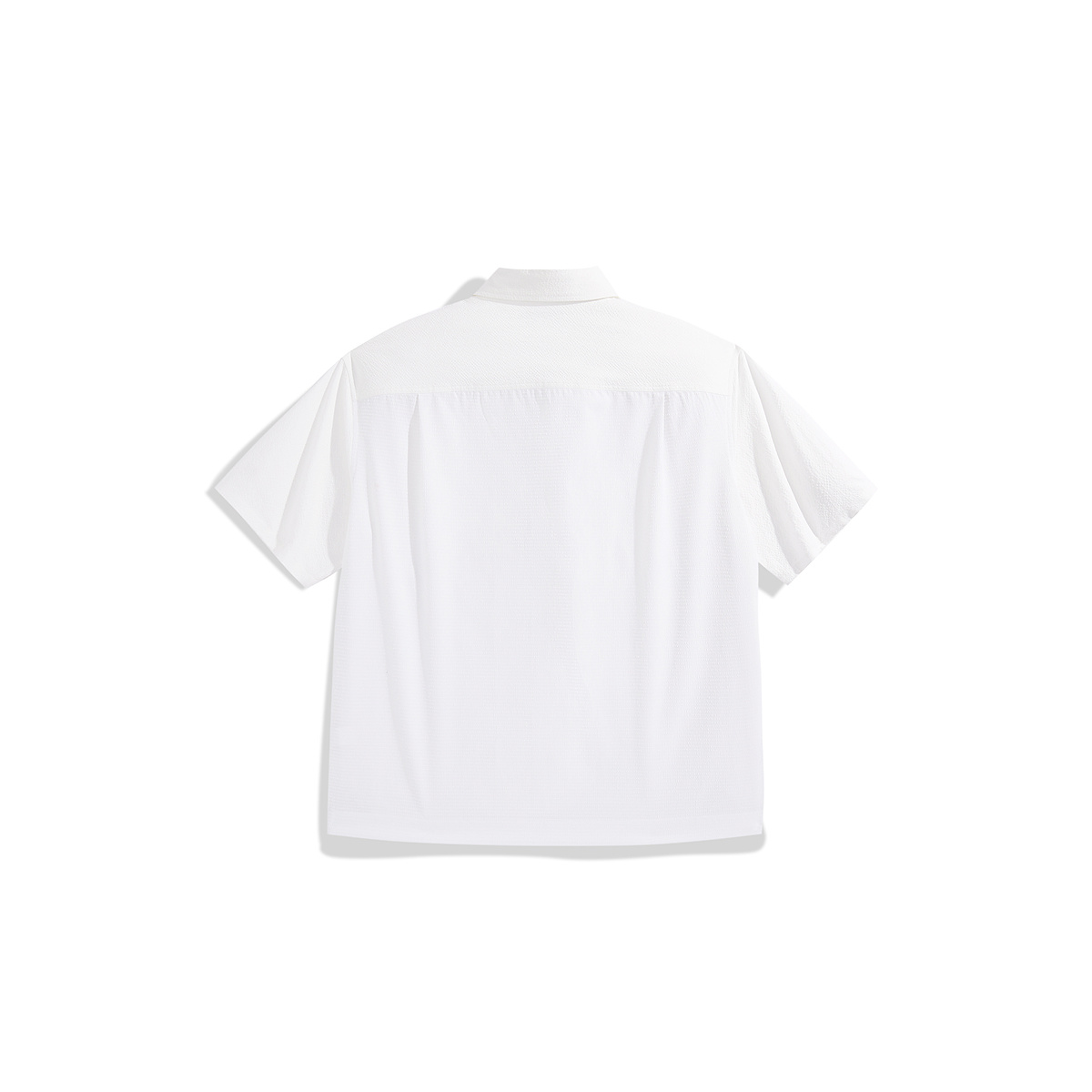 太平鸟男装 短袖白色衬衫夏季翻领纯色泡泡纱潮流休闲款