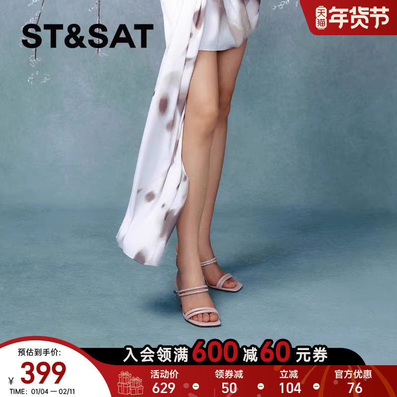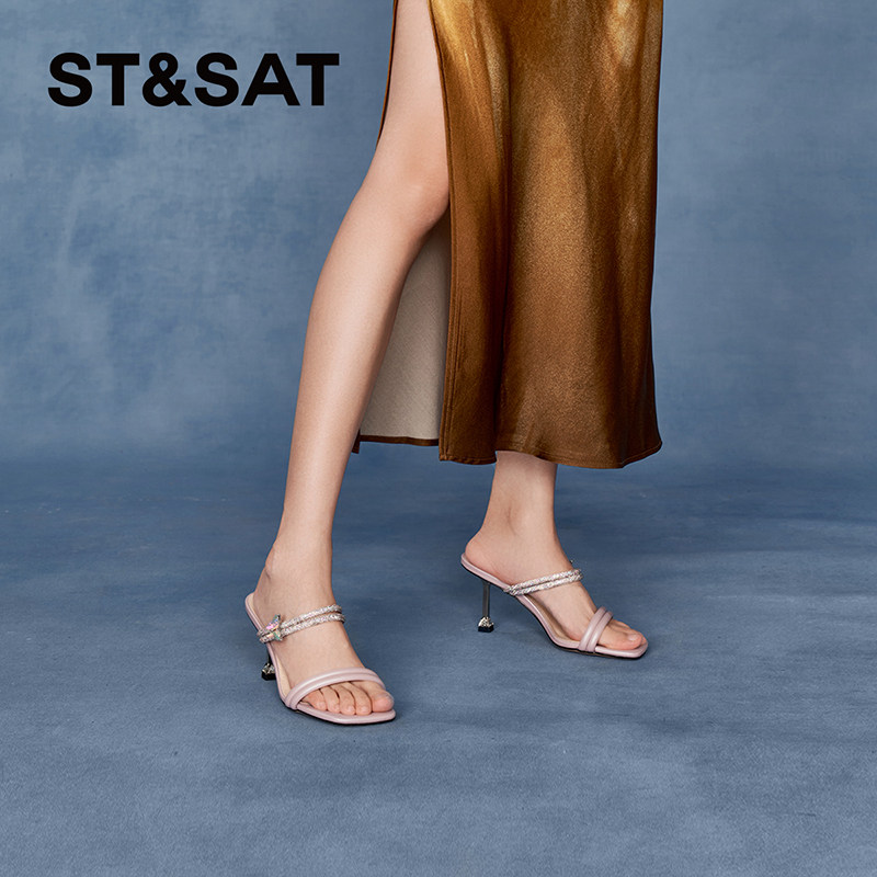 星期六夏新款蝴蝶一字带凉鞋女仙女风露趾高跟拖鞋SSC2115242