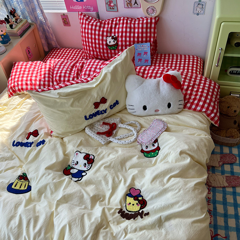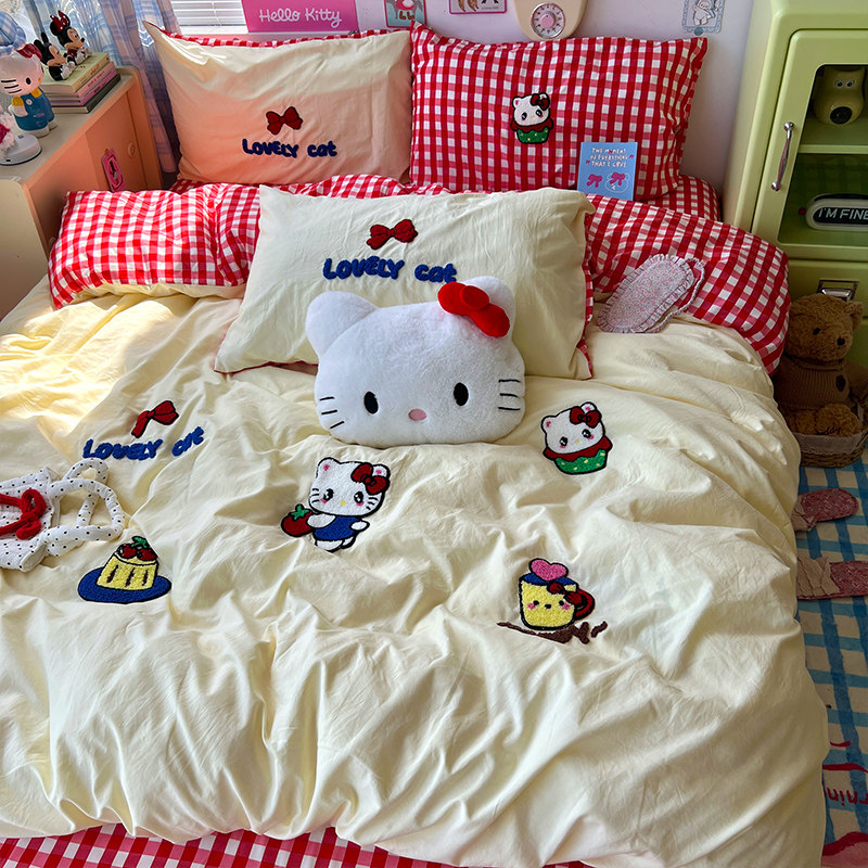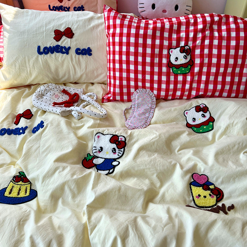 A类可爱卡通纯棉全棉四件套2025新款床单被套被罩学生宿舍三件套4