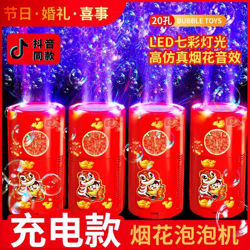 过新年烟花泡泡机网红爆款儿童吹泡泡礼花鞭炮烟火全自动婚礼玩具