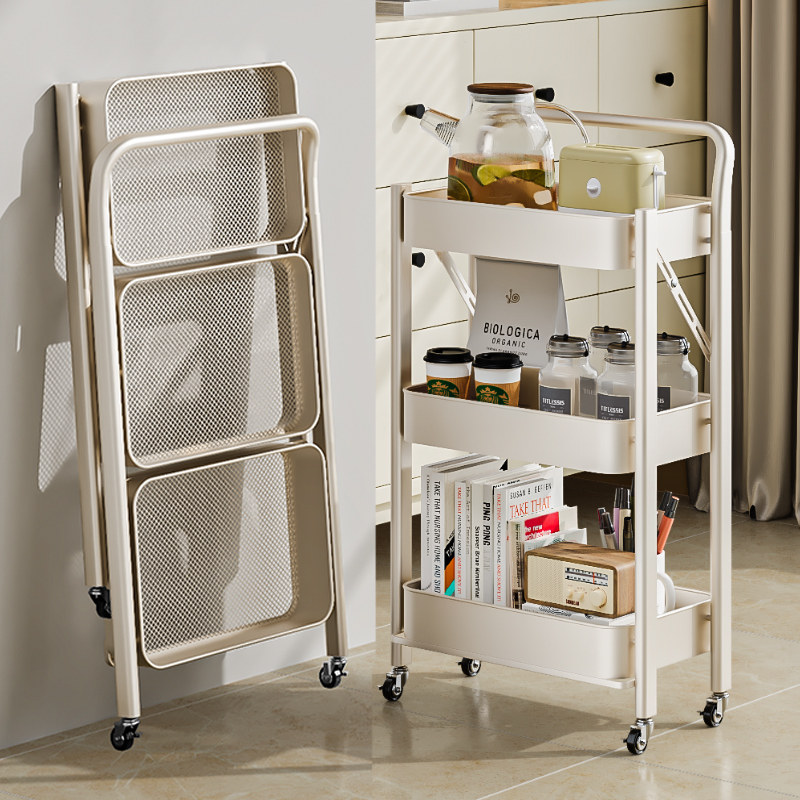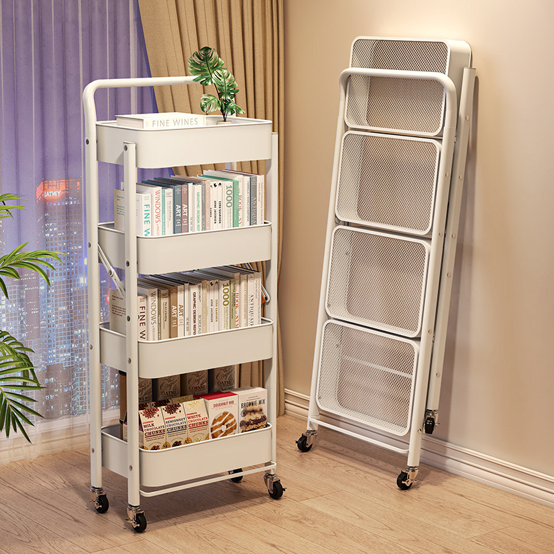 可折叠置物架小推车落地家用室内客厅卧室茶几边几沙发边柜收纳架