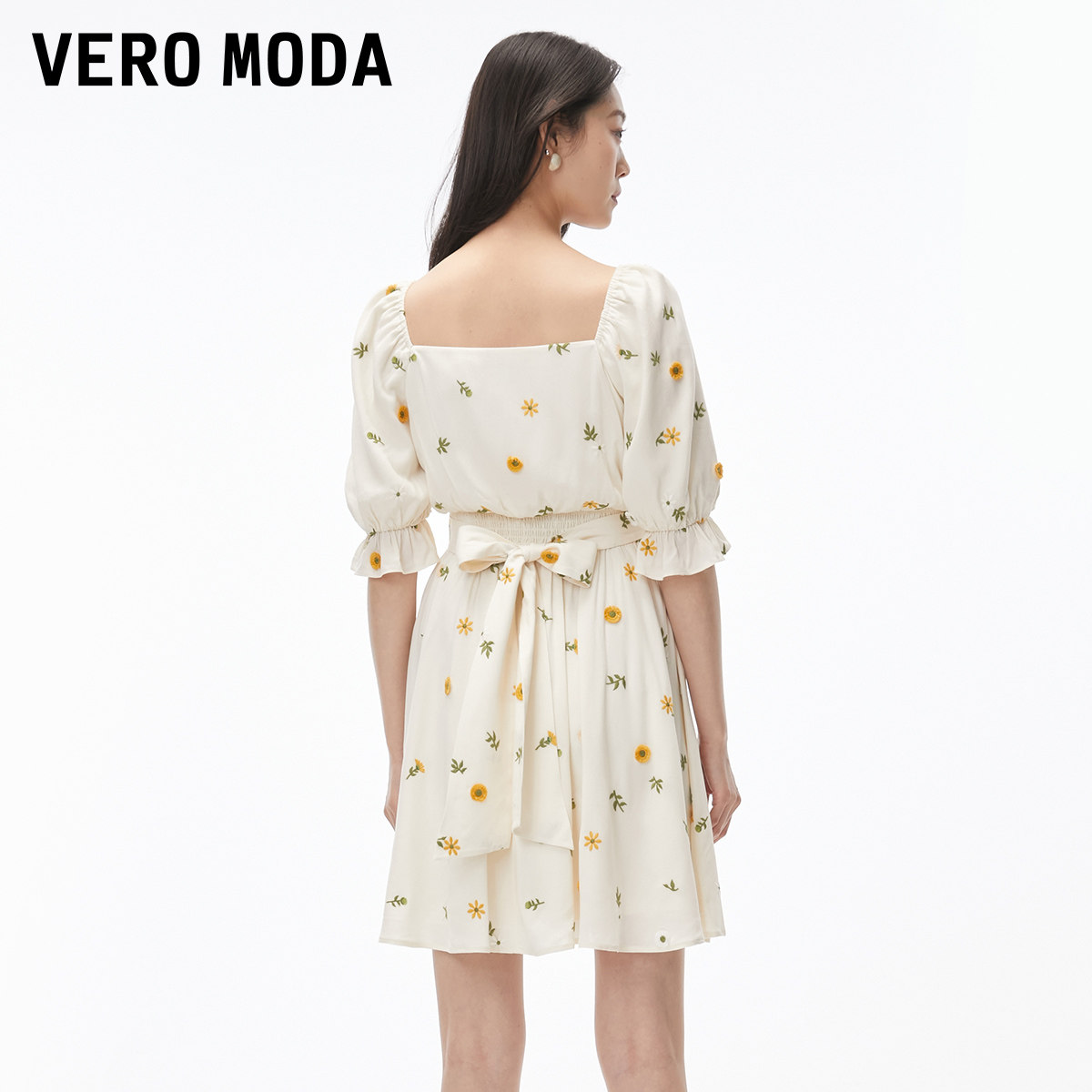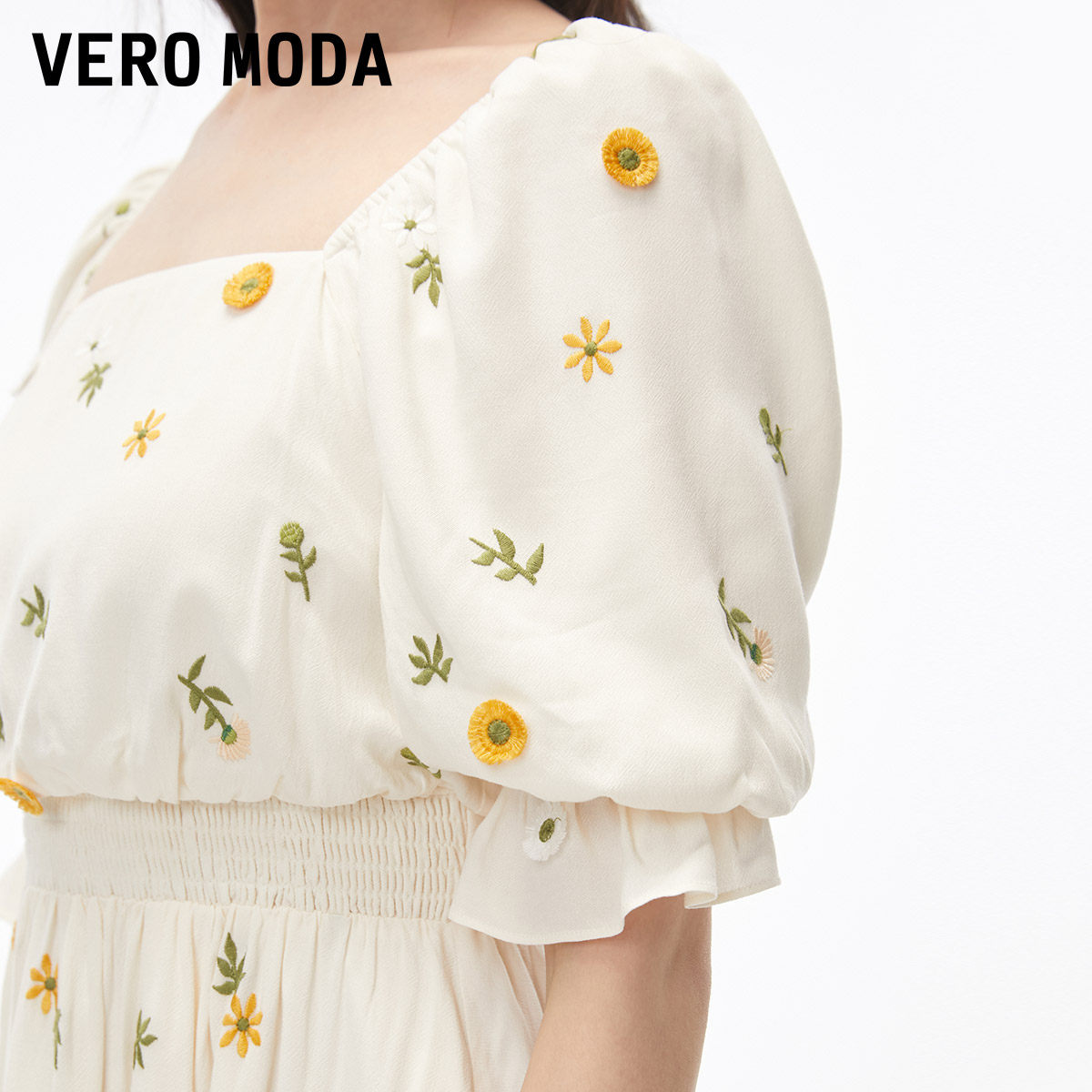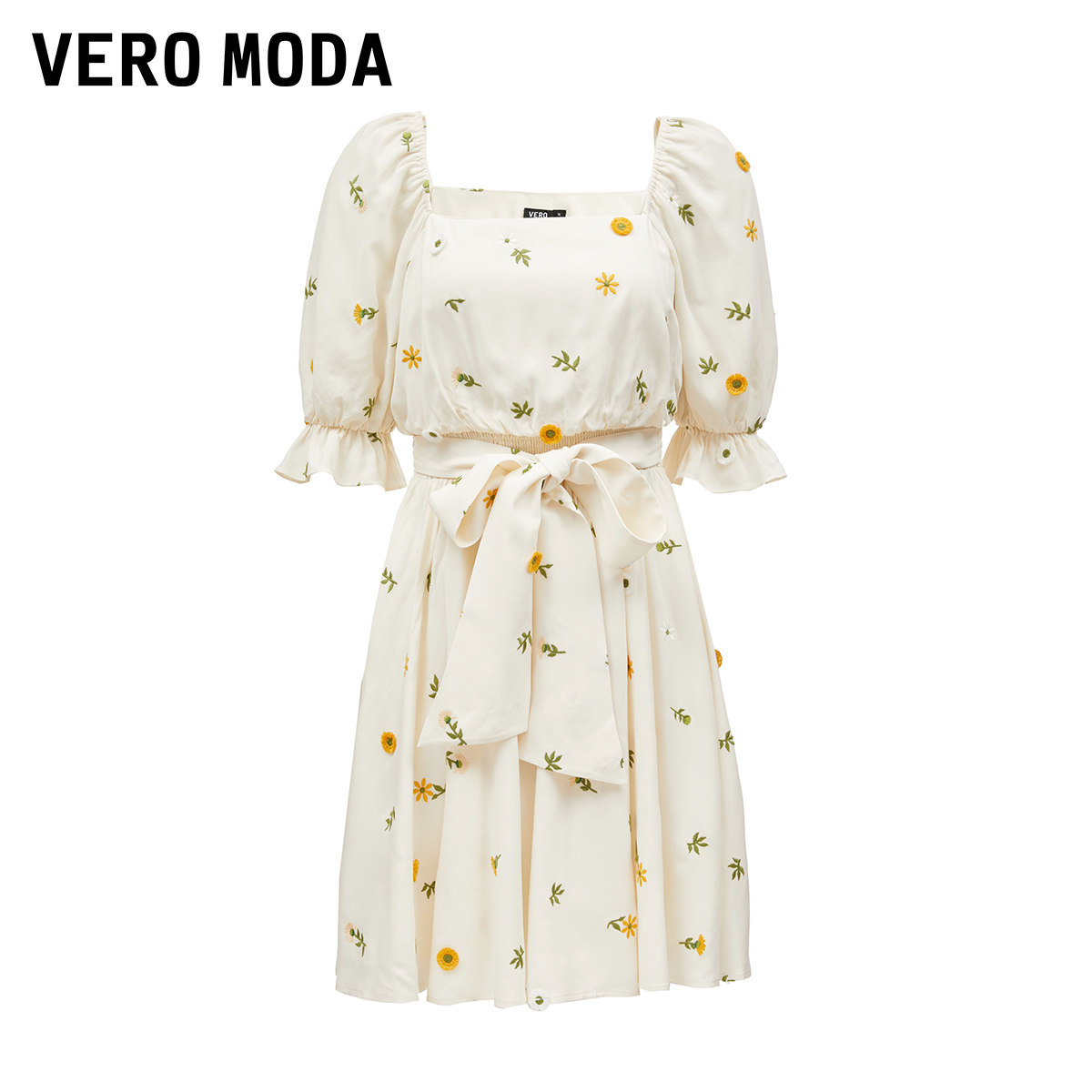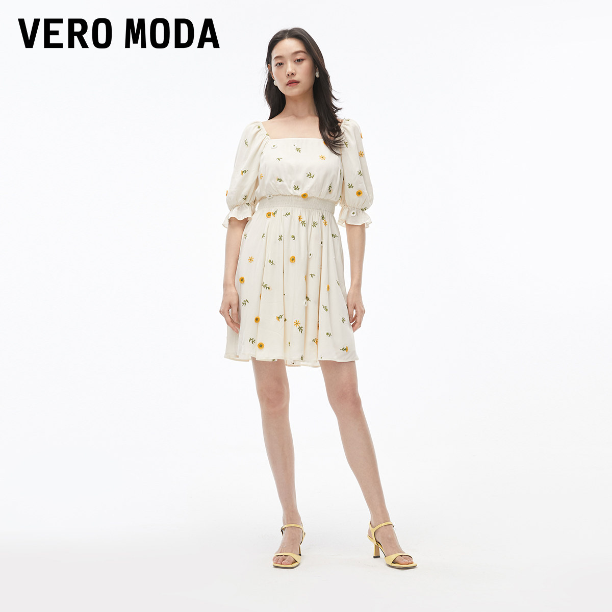 Vero Moda奥莱连衣裙夏季清仓时尚方领泡泡袖A摆优雅气质浪漫时尚