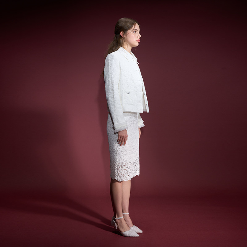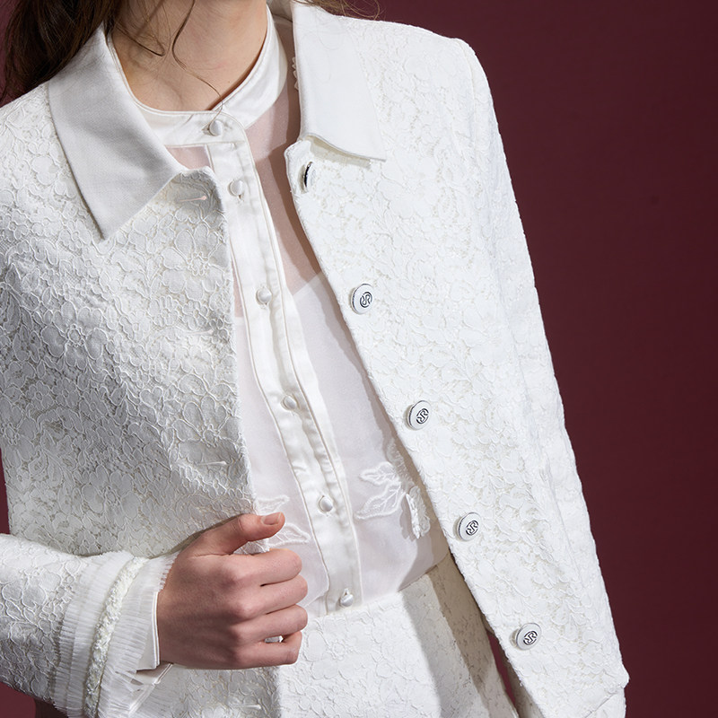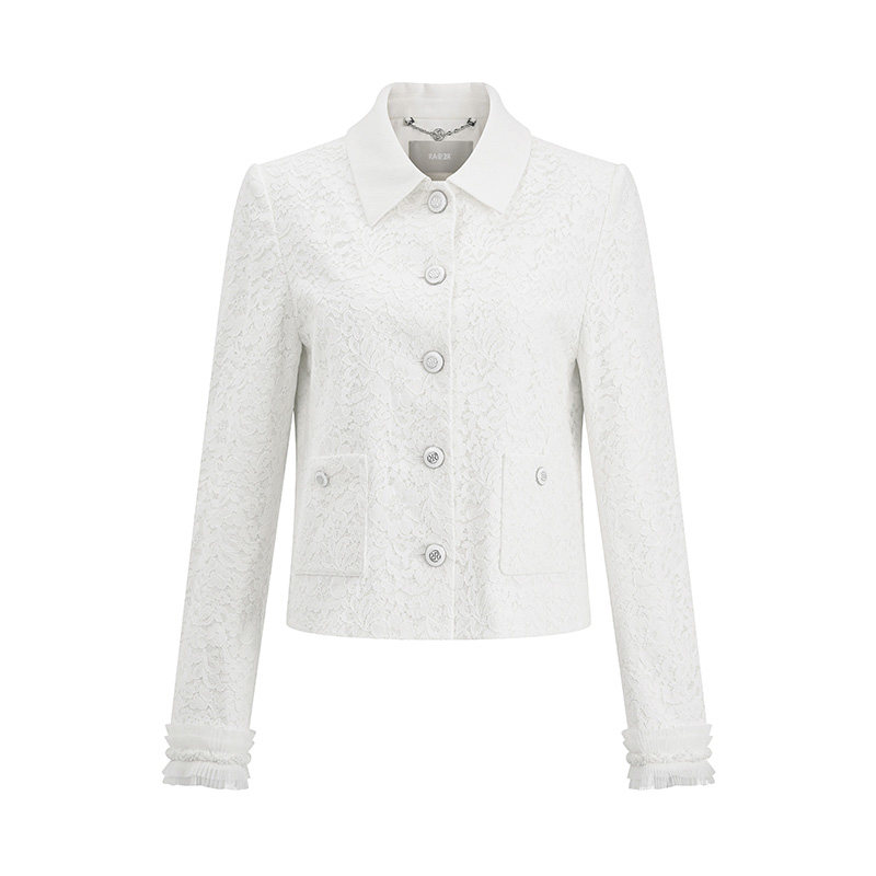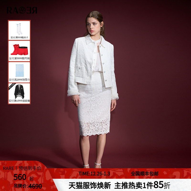 RARE威雅女装 春夏新款蕾丝夹克外套半身裙女士白色时尚通勤套装
