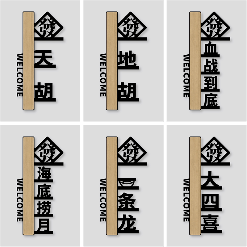个性镂空亚克力标识牌棋牌室麻将馆茶楼包厢门牌台球室饭店雅间墙贴指示牌定制发财竖款门牌清一色大四喜标牌