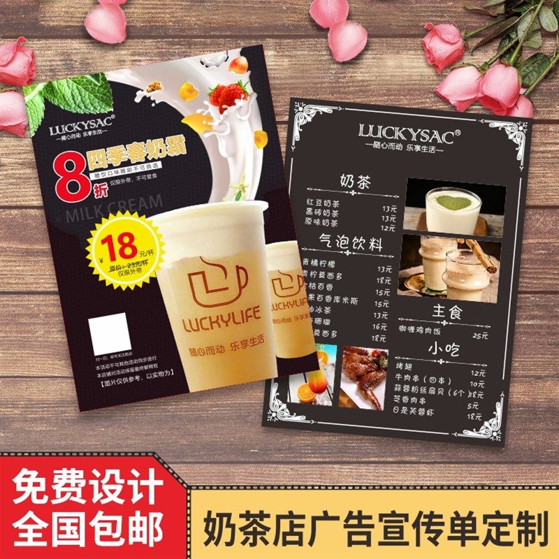 奶茶店广告宣传单制作饮品咖啡y开业活动海报传单彩页印刷定做印