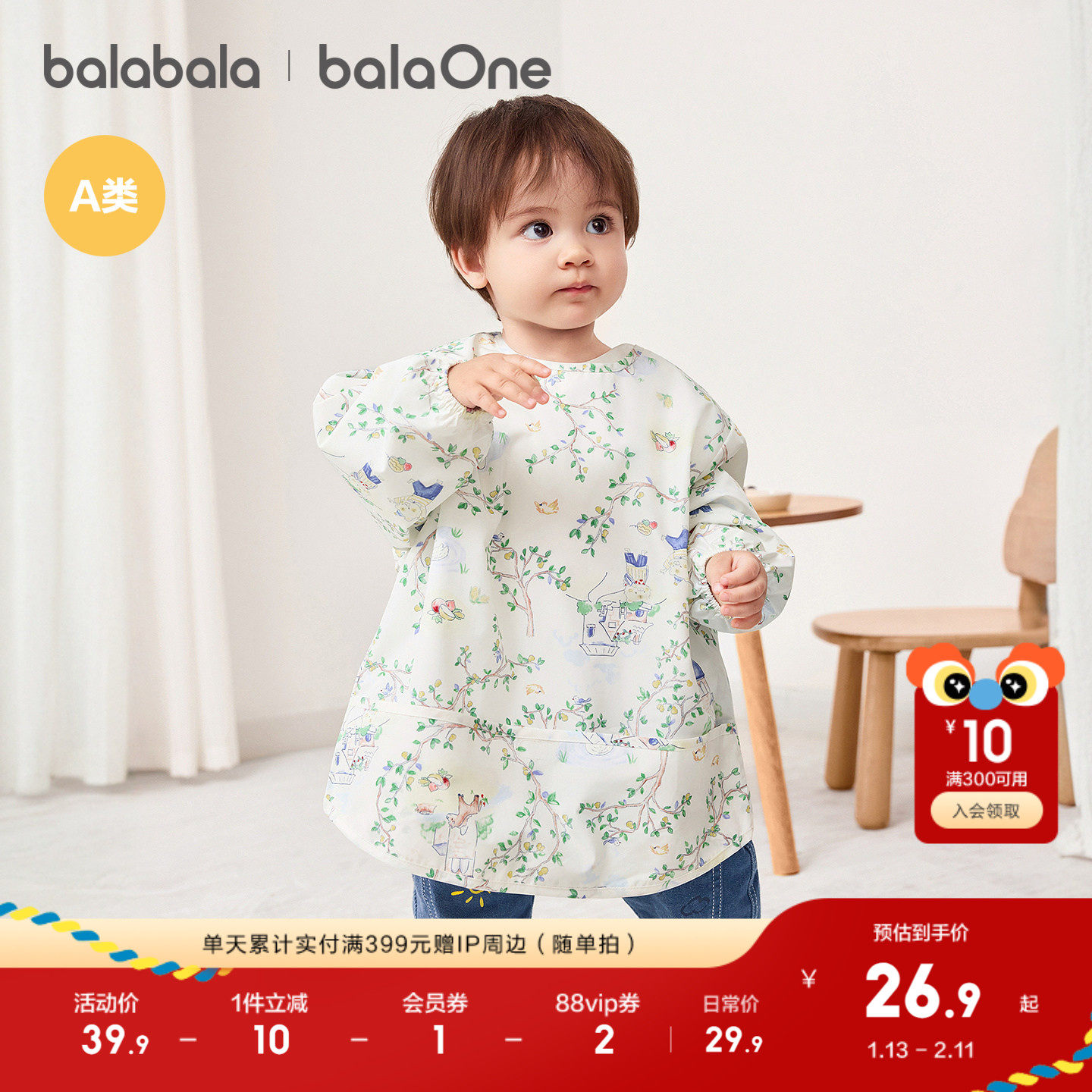 【balaOne】巴拉巴拉婴童用品宝宝罩衣反穿衣吃饭围兜柔软轻薄萌