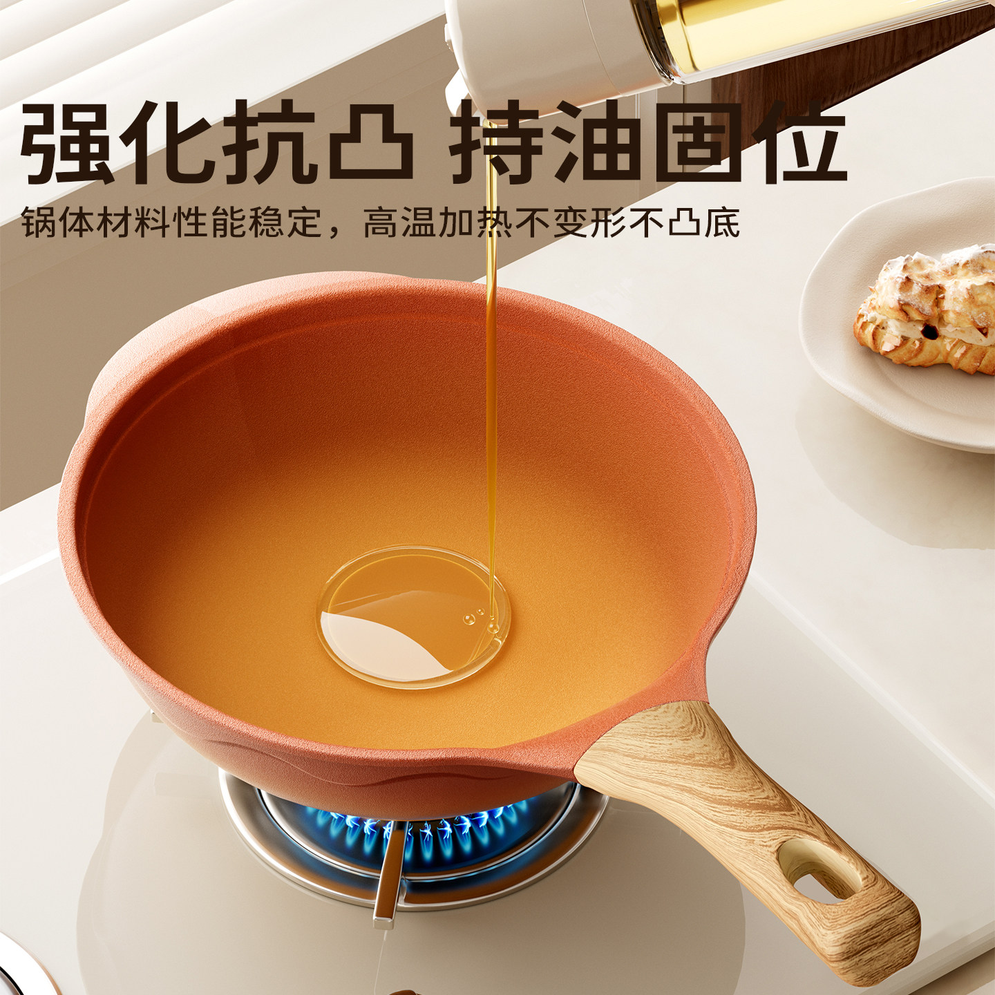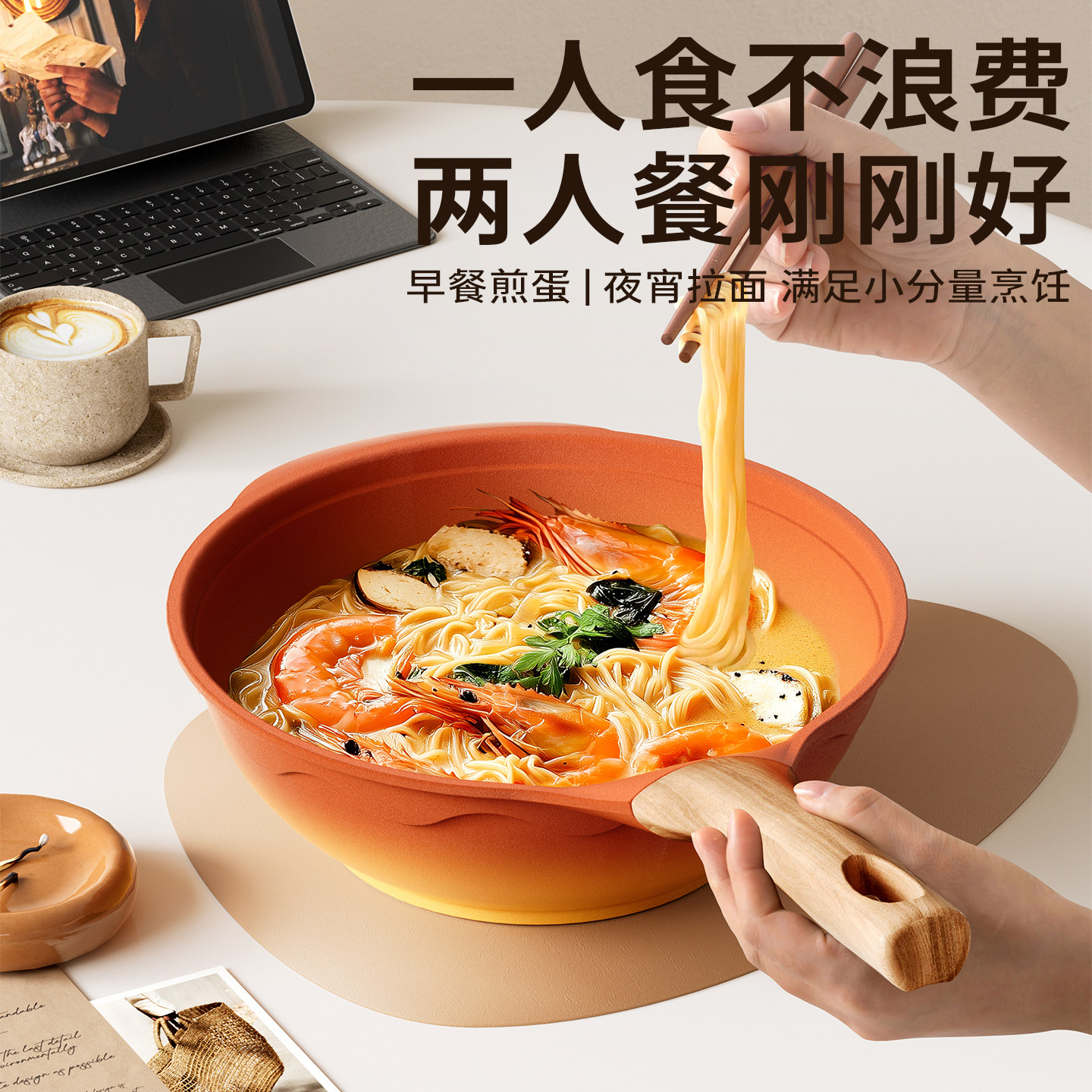 Amercook阿尔菲塔复古陶土不粘锅平底一人食小炒锅电磁炉两人家用