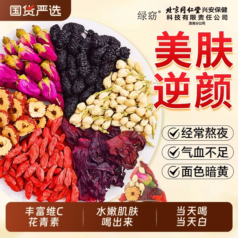 同仁堂玫瑰洛神花茶美容养颜补气养血正品花茶女人士养生茶包桑葚