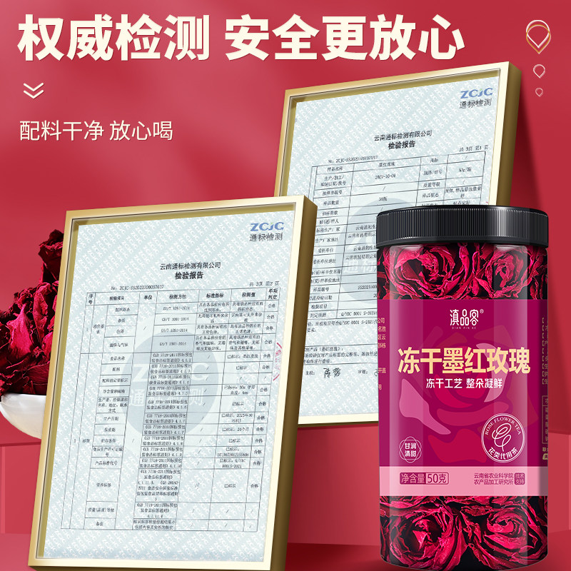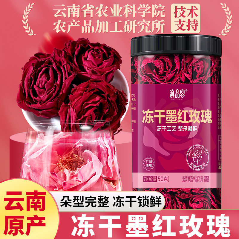 滇品客云南冻干墨红玫瑰花食用玫瑰花茶重瓣无硫头茬玫瑰花大罐装