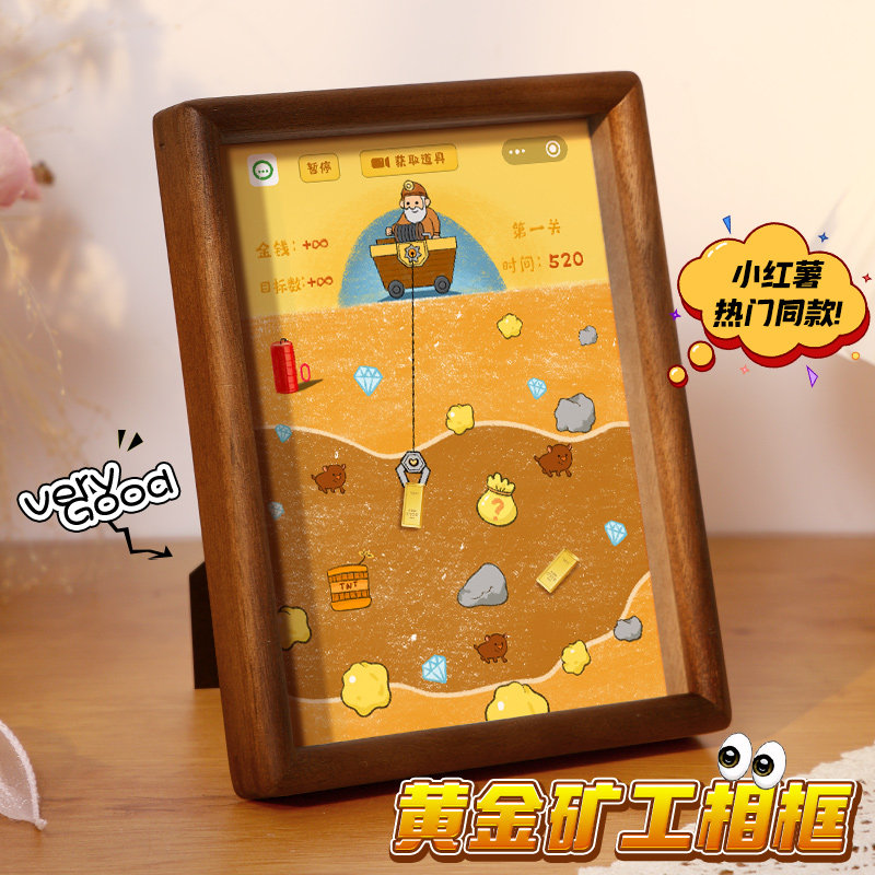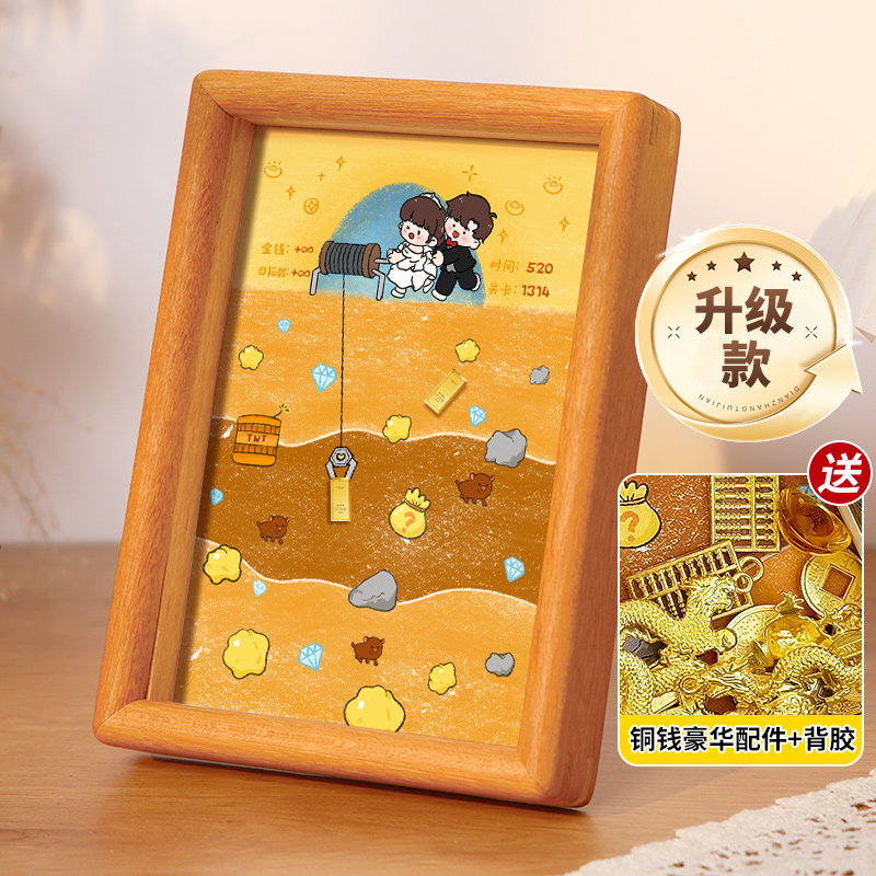 七夕礼物黄金矿工diy画实木榫卯相框挖金矿高级创意摆件淘金收纳