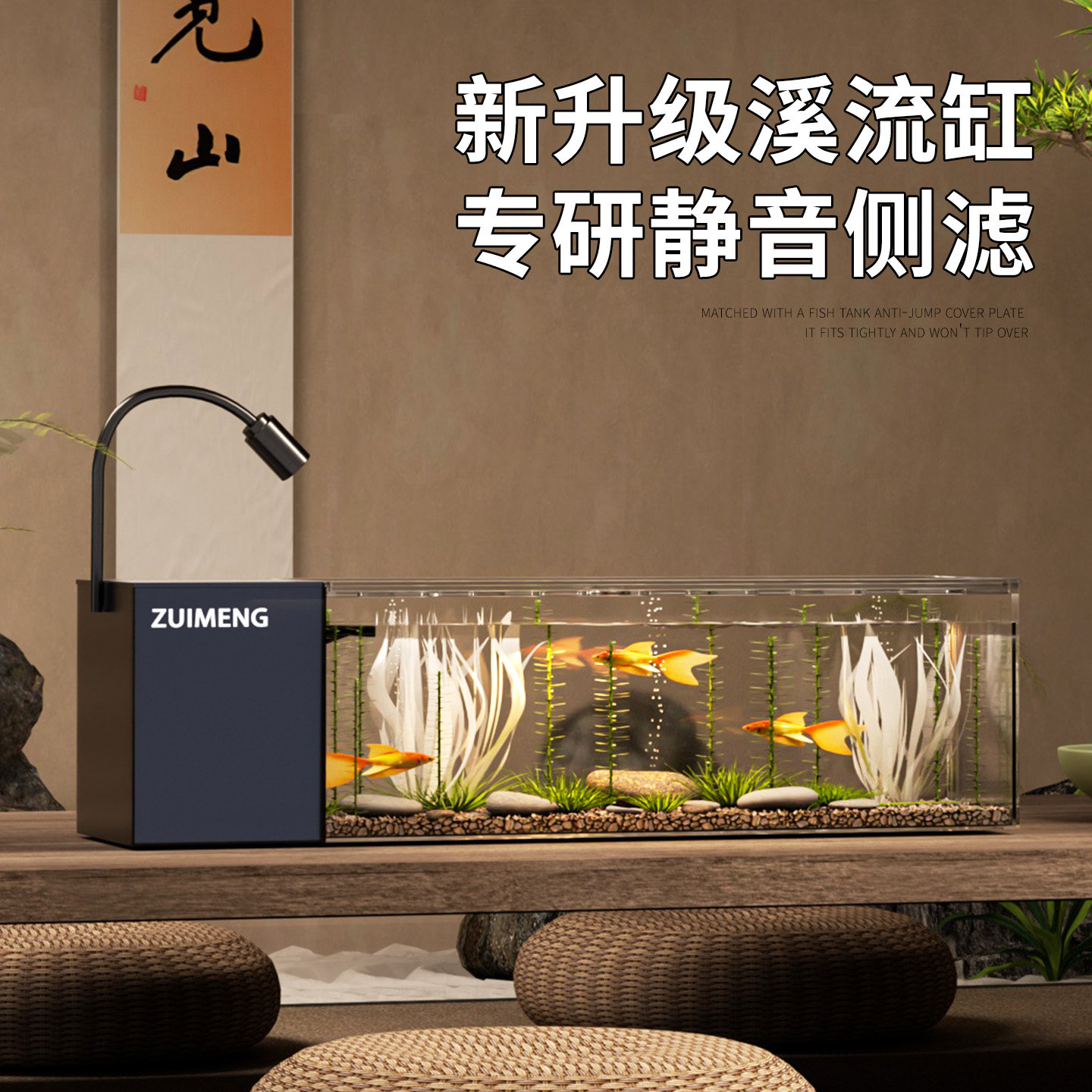 鱼缸客厅小型2026新款桌面侧滤溪流缸过滤制氧一体金鱼水草缸专用
