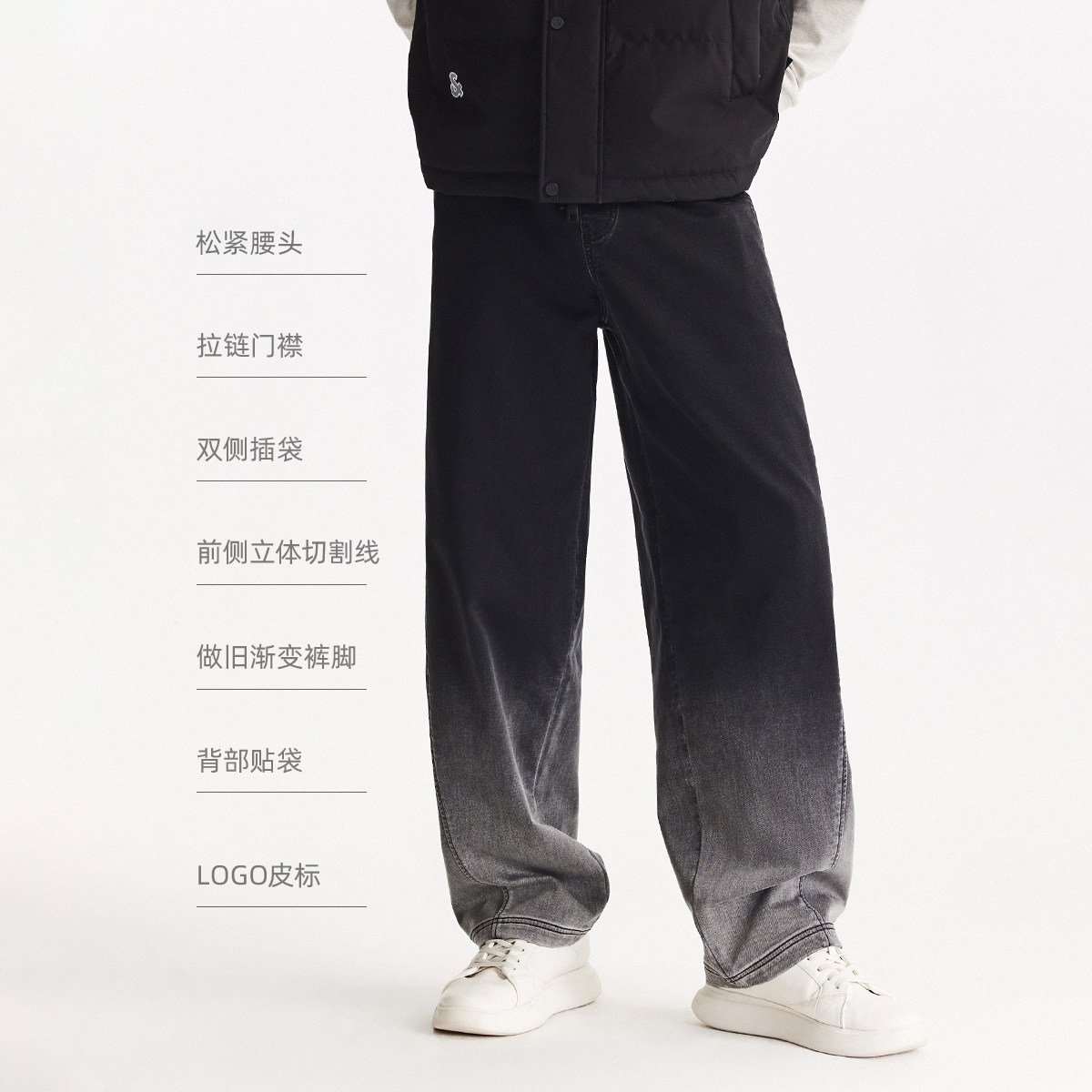 杰克琼斯春季男装牛仔裤时尚渐变裤脚超廓形潮休闲宽松长裤裤子