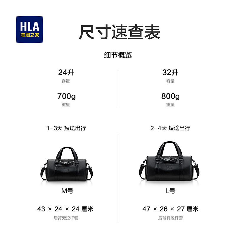 HLA/海澜之家短途旅行包女轻便大容量出差手提旅游包行李袋男健身