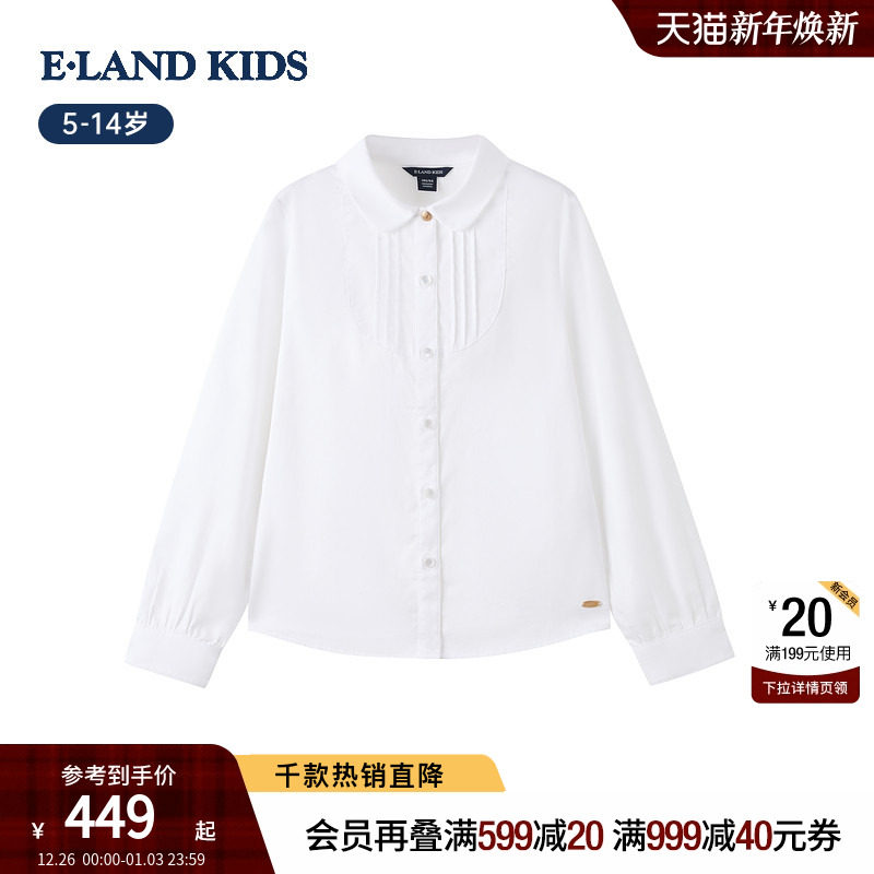 【100%棉】eland kids衣恋童装女童衬衫26年春季新品翻领长袖上衣