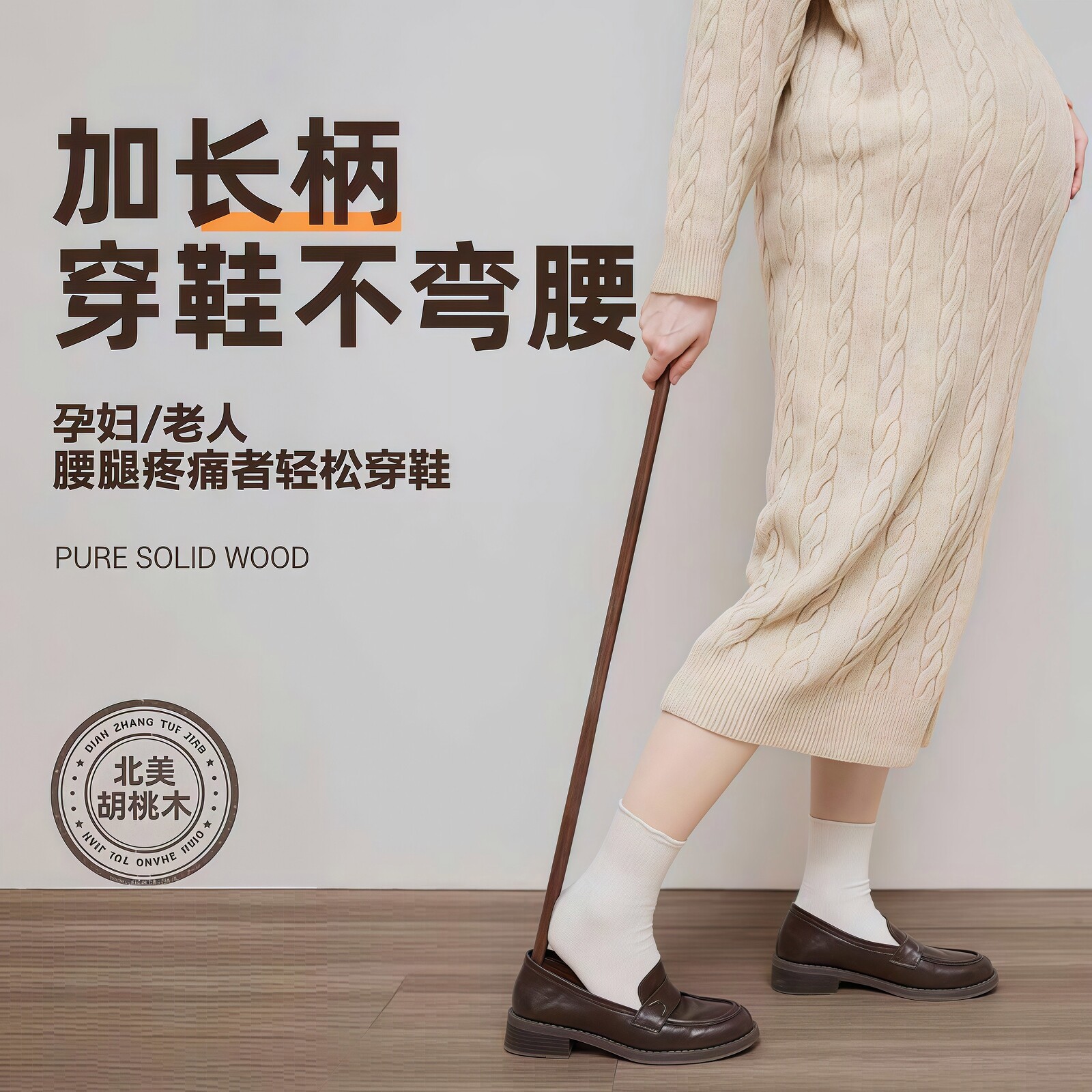 黑胡桃鞋拔子老人孕妇长柄提鞋器磁吸实木鞋抽加长鞋扒穿鞋不弯腰