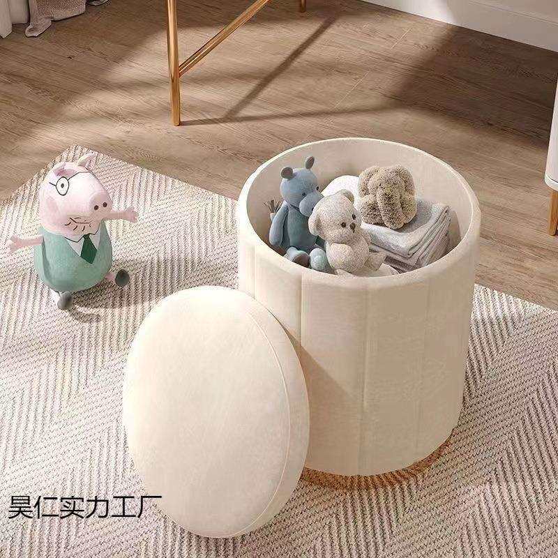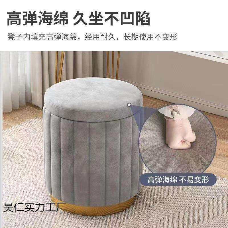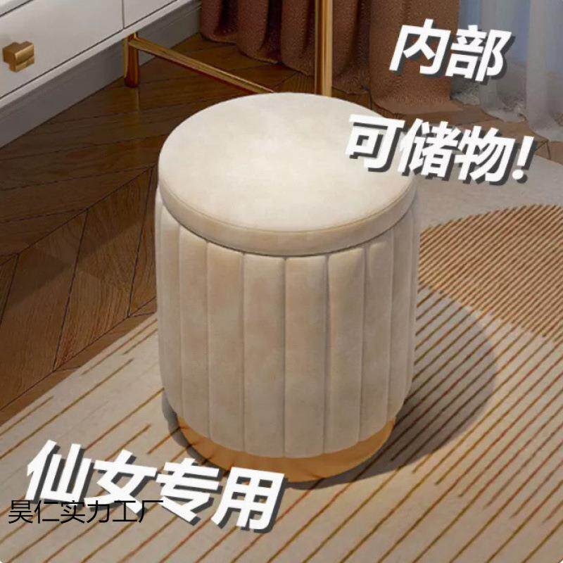 化妆凳子家用梳妆台凳子可收纳圆凳轻奢简约梳妆美甲圆凳木无