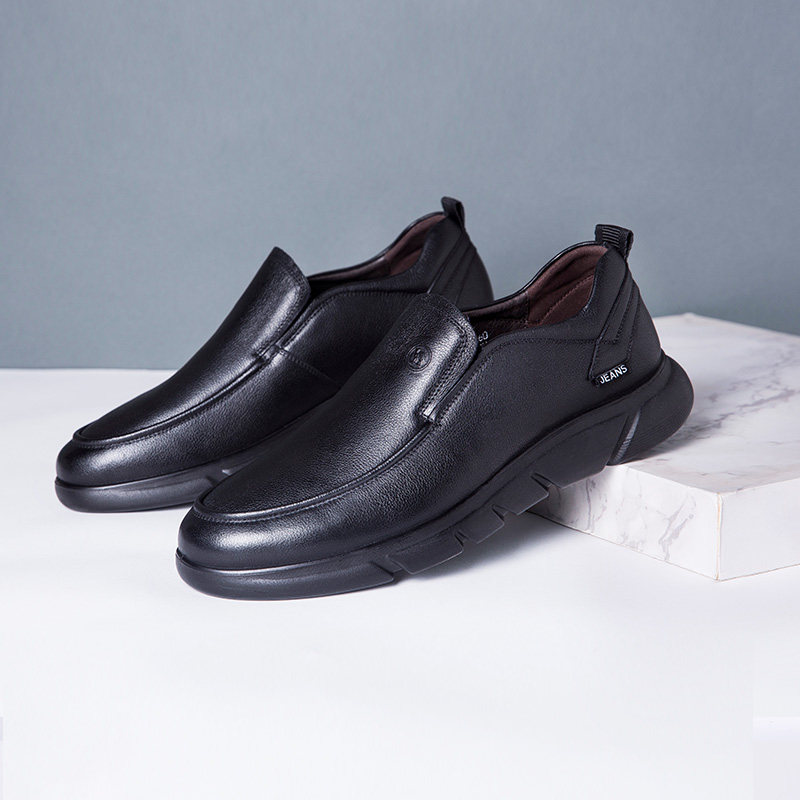 老人头男鞋冬季皮鞋男士中年商务休闲皮鞋真皮加绒软底舒适爸爸鞋