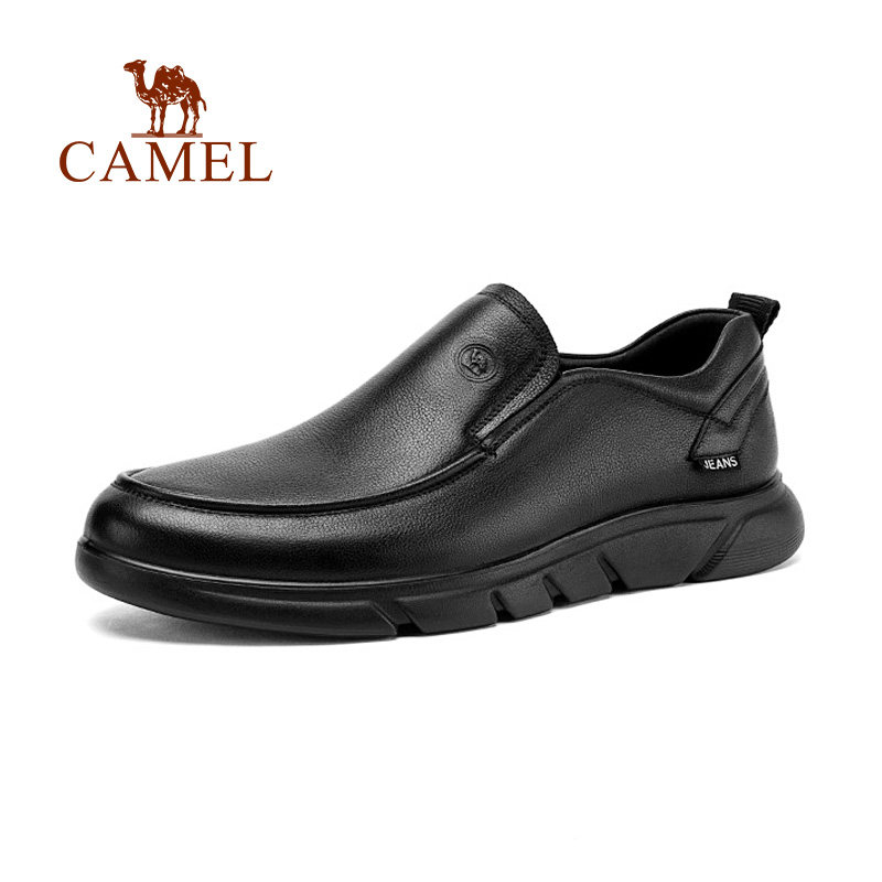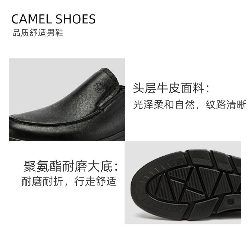 骆驼皮鞋男士2025冬真皮商务休闲中老年软底防滑爸爸懒人鞋子男