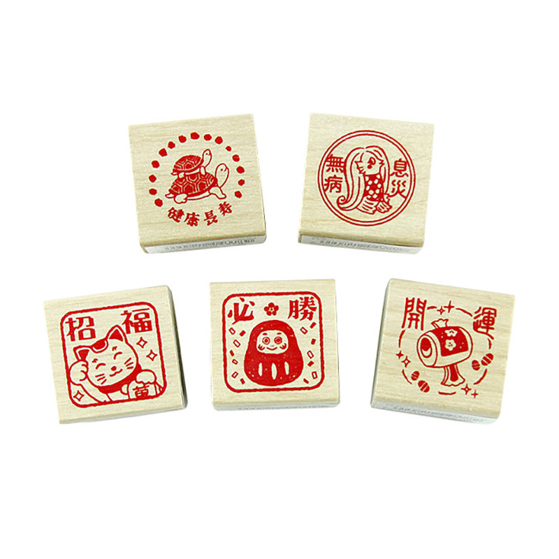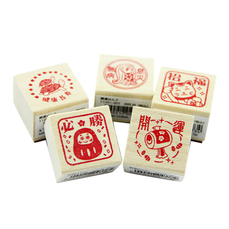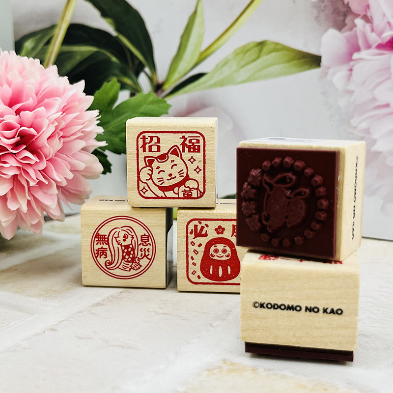 日本KODOMO NO KAO木头印章学生文具-开运系列手帐装饰素材