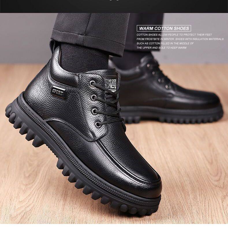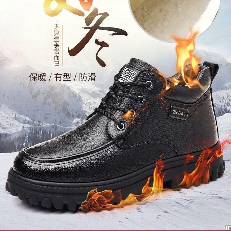 2025皮鞋冬季男士加绒保暖真皮爸爸棉鞋防滑雪地靴男休闲牛皮高帮