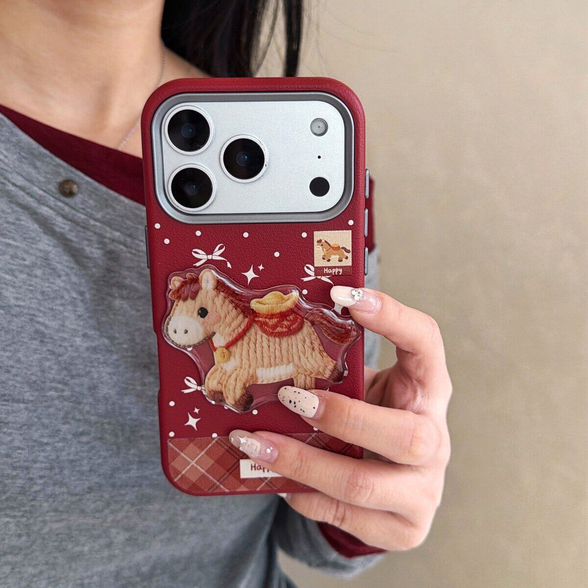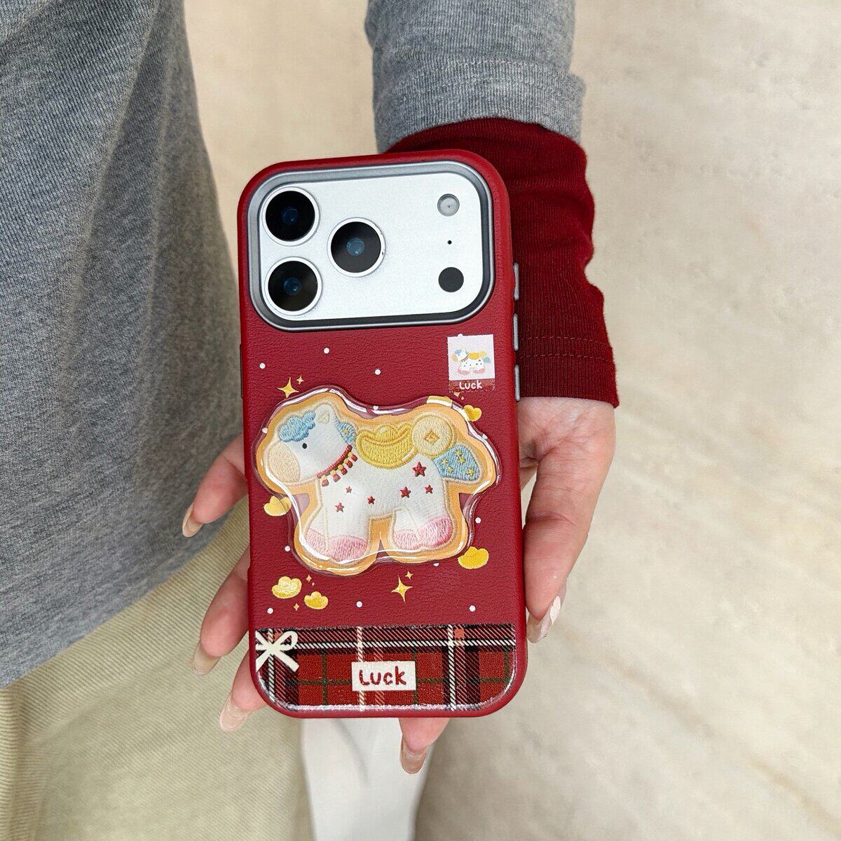 酒红萌系ins立体小马适用苹果17promax好看的手机壳iPhone17手机壳16Pro可爱11小众Xr14Puls全包保护套