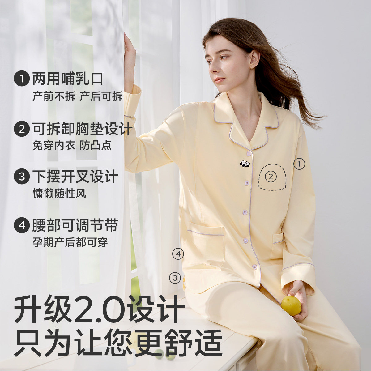cutelife【轻羽】月子服女士长袖家居服孕妇竹棉哺乳睡衣秋冬套装