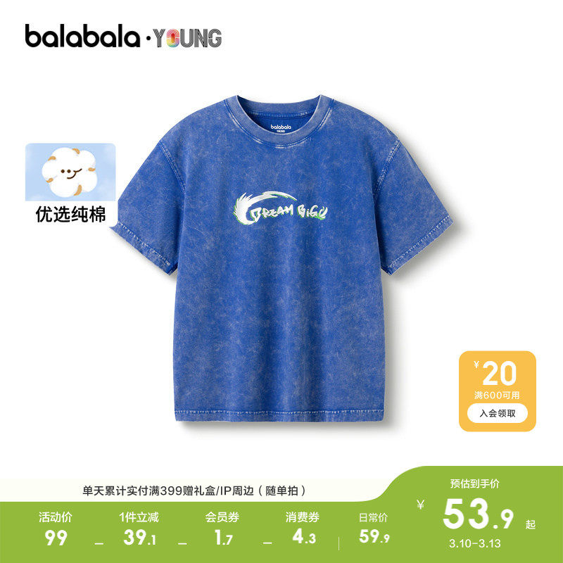 巴拉巴拉儿童短袖春夏装男童t恤女童中大童印花纯棉上衣潮潮