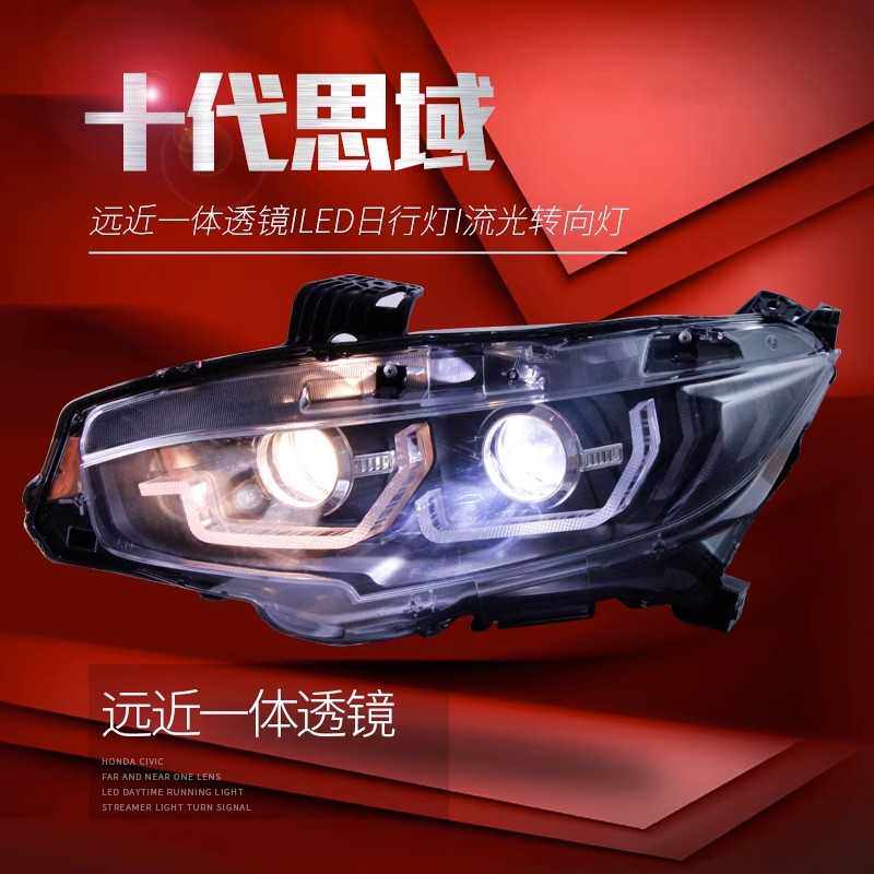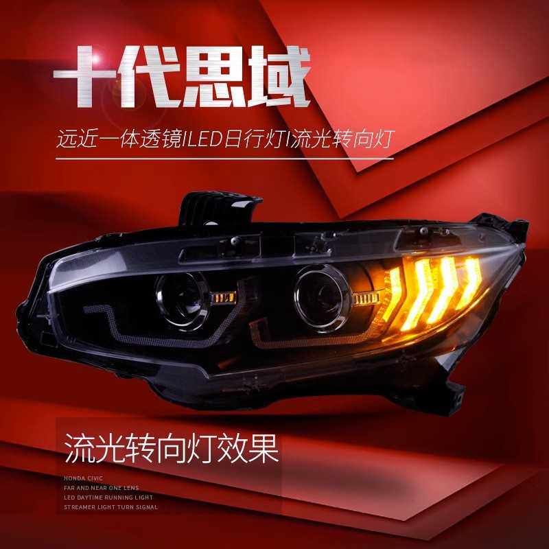 适用于十代思域大灯总成改装LED流光转向灯日行灯双光透镜氙气灯