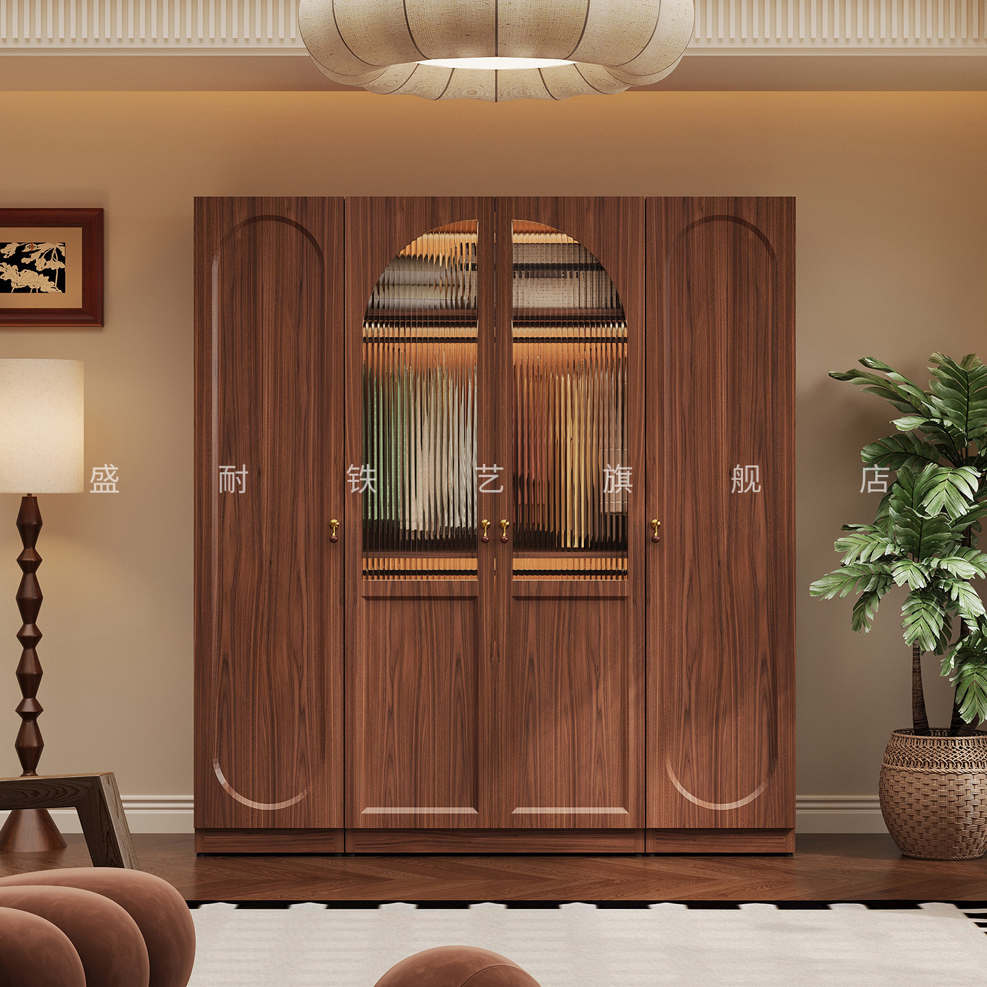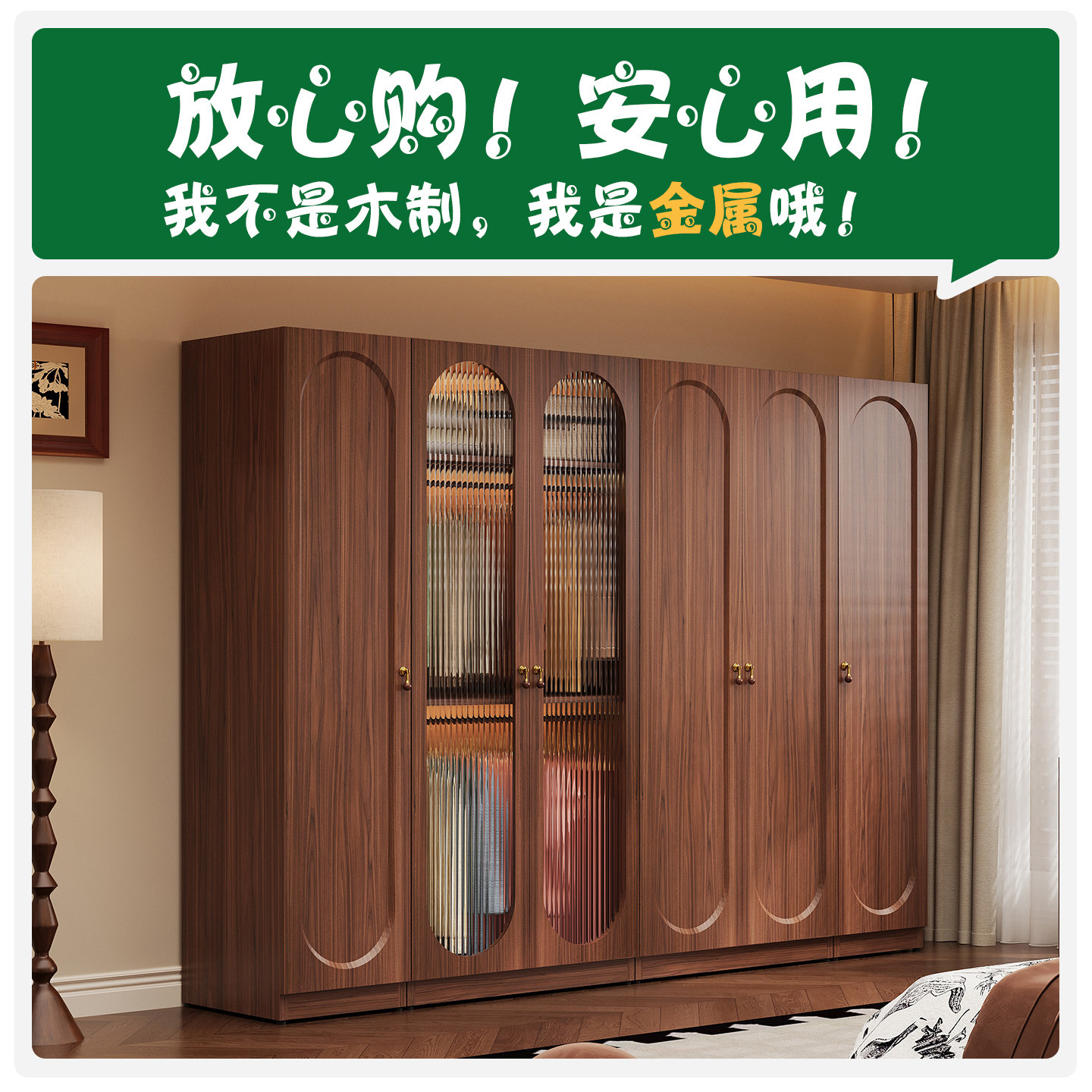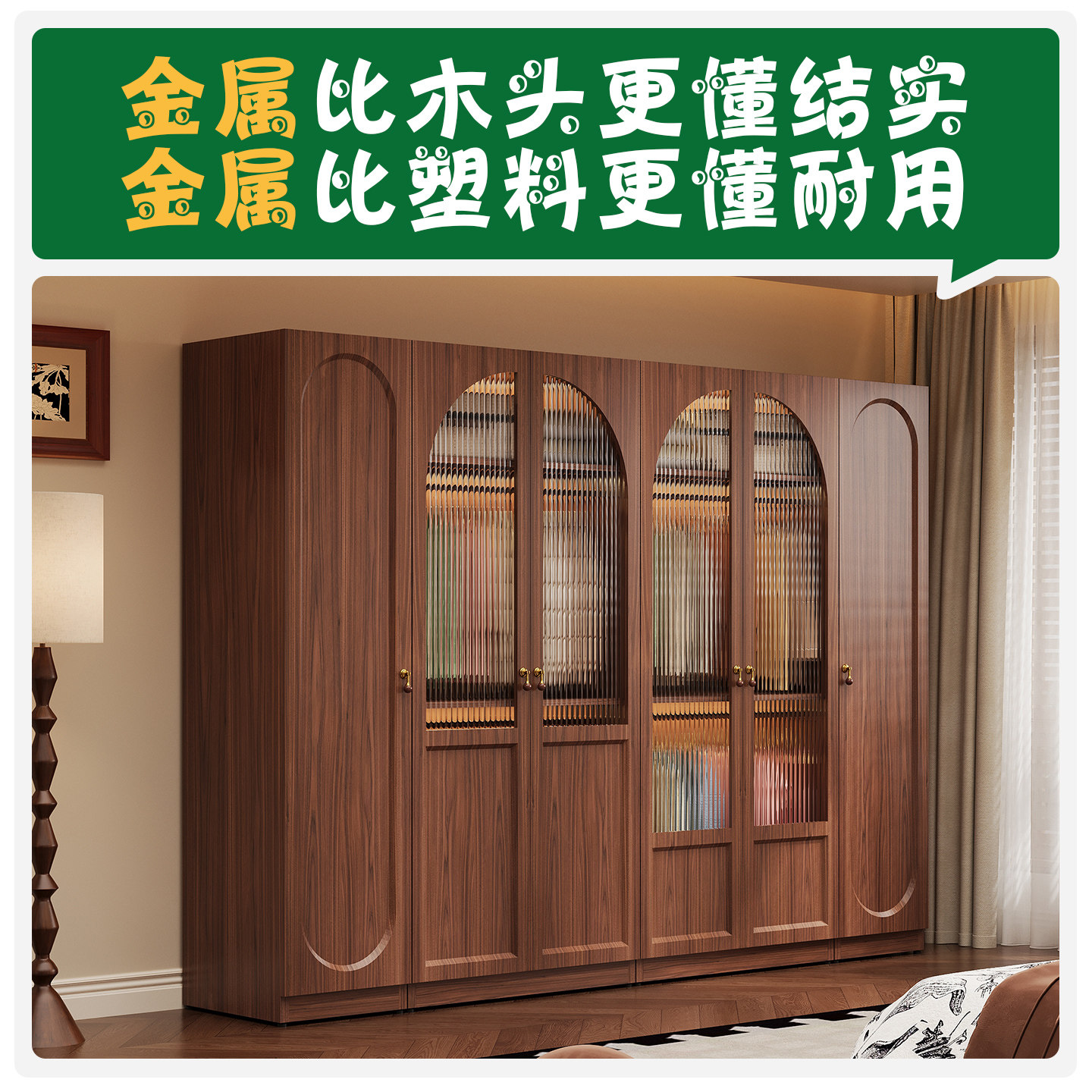 包豪斯中古风金属衣柜铁皮收纳柜家用卧室儿童铁艺大容量储物柜子