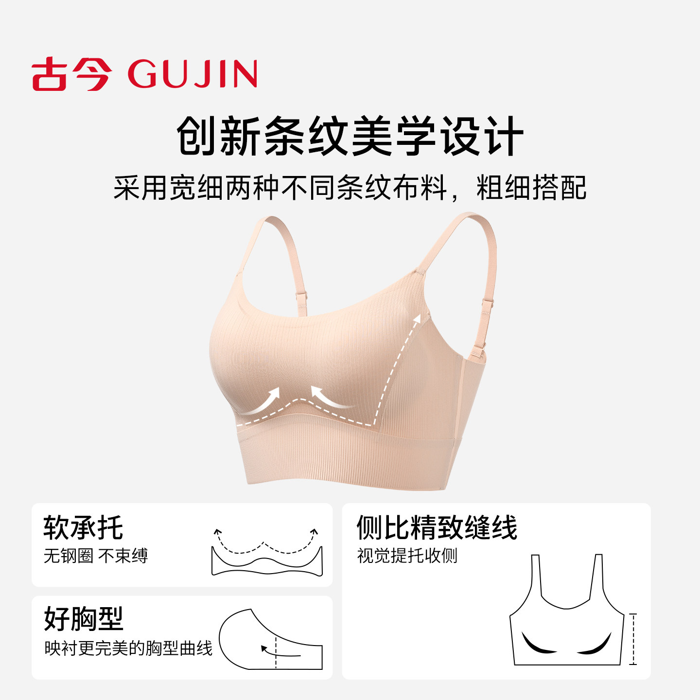 古今无钢圈背心式舒适轻运动系列不束缚无痕文胸罩舒适内衣女士