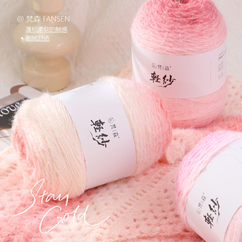 轻纱长绒毛线渐变毯子线手工编织钩针钩织帽子围巾衣服手编材料包
