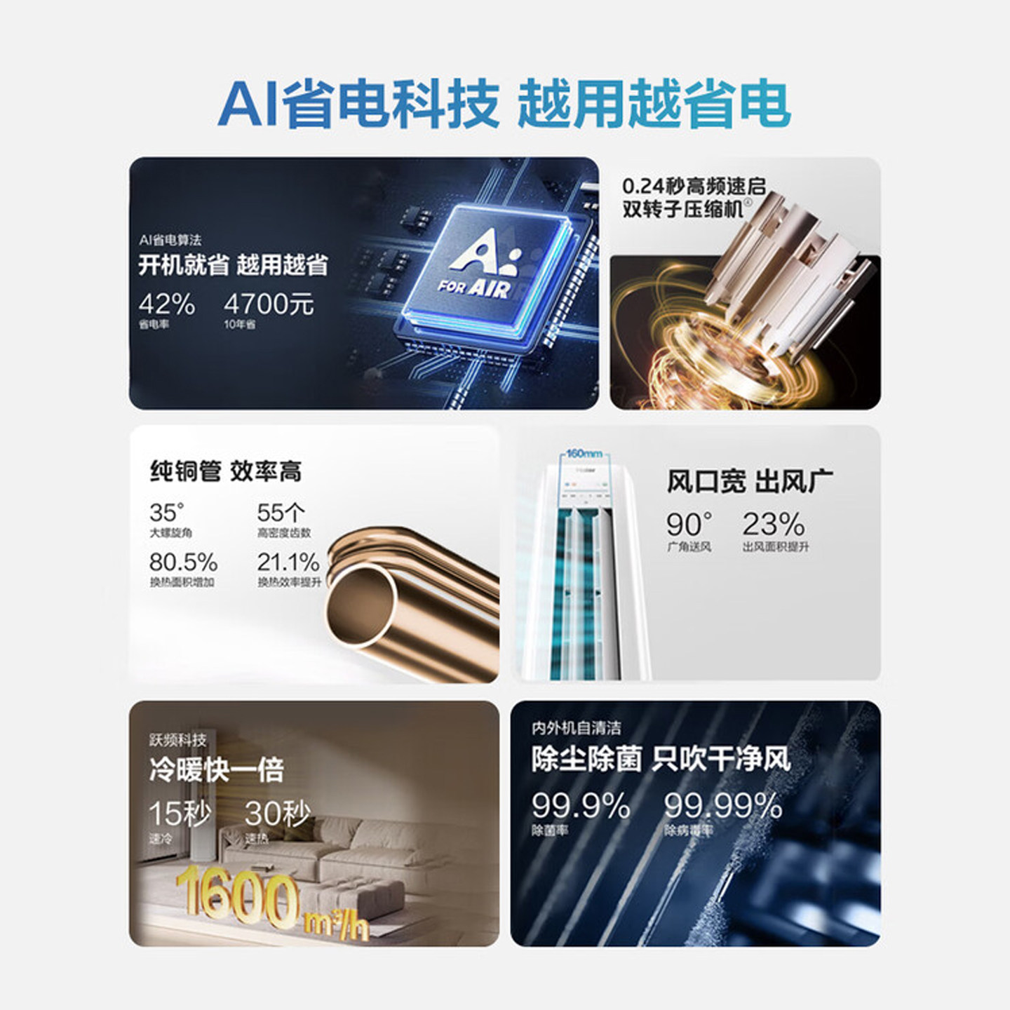 小米空调巨省电1匹挂机冷暖两用新一级家用变频自清洁智能官方