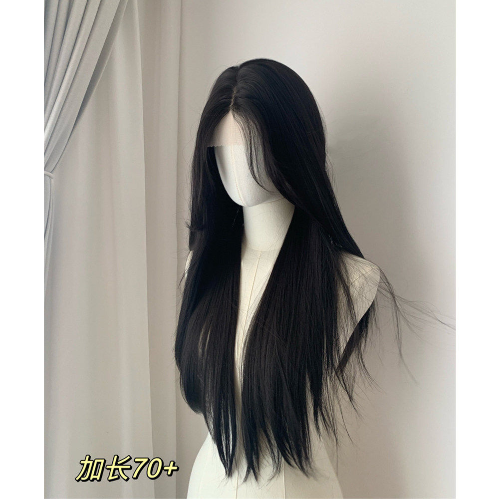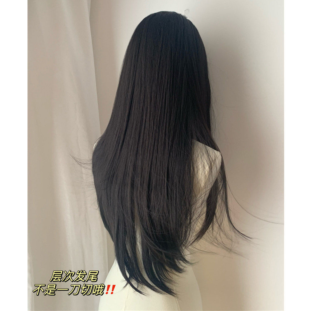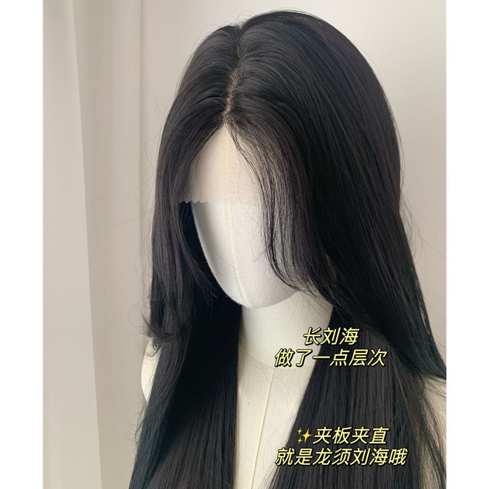 白月光·黑色假发黑长直女全头套小蕾丝八字刘海长发直发万用cos