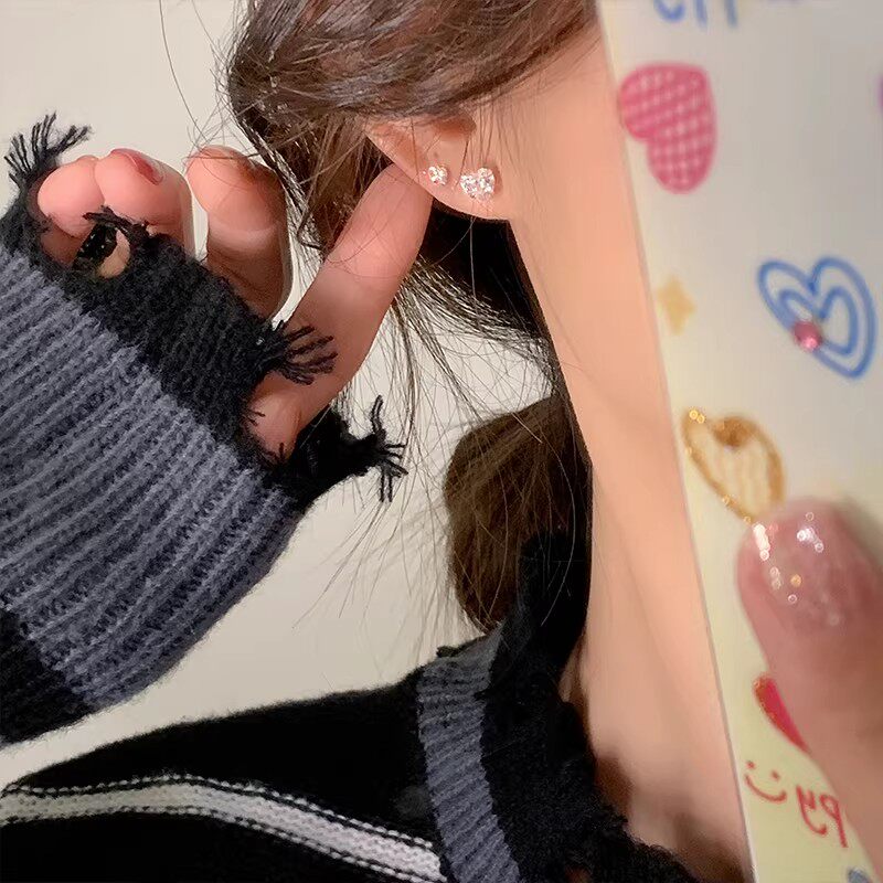 2026新款925银针耳钉爱心爆闪防过敏免摘耳饰女耳环感耳骨钉足银