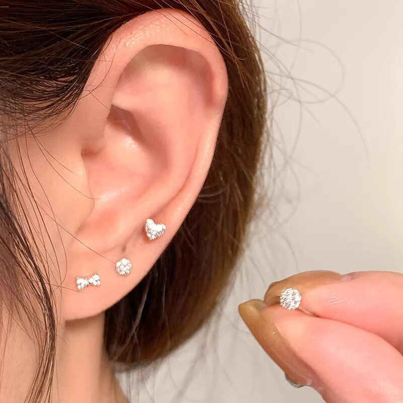 999纯银耳钉女养耳洞耳骨钉小众高级感锆石耳蜗钉水钻耳环银耳饰