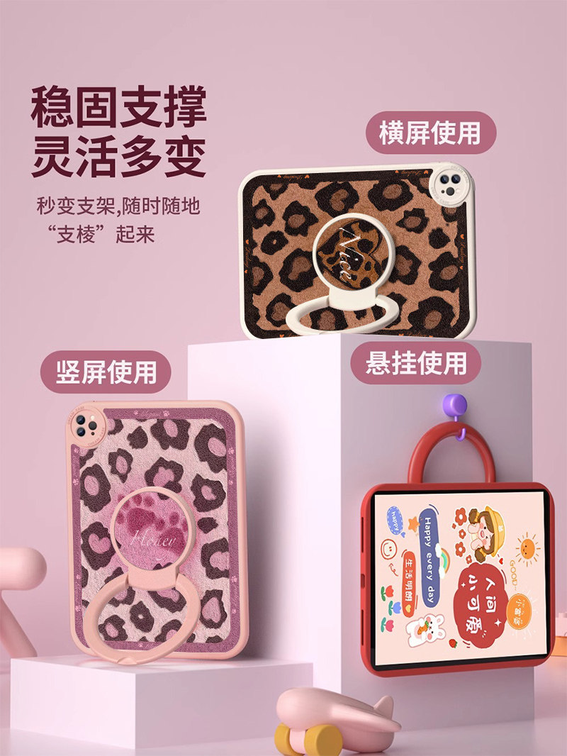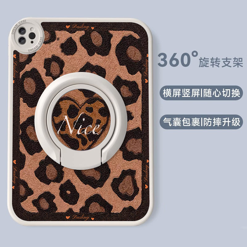 豹纹适用ipad5/6苹果第11代新款mini6/7时尚air7欧美女10.5带支架360°旋转第10代平板壳pro11防摔air5硅胶11