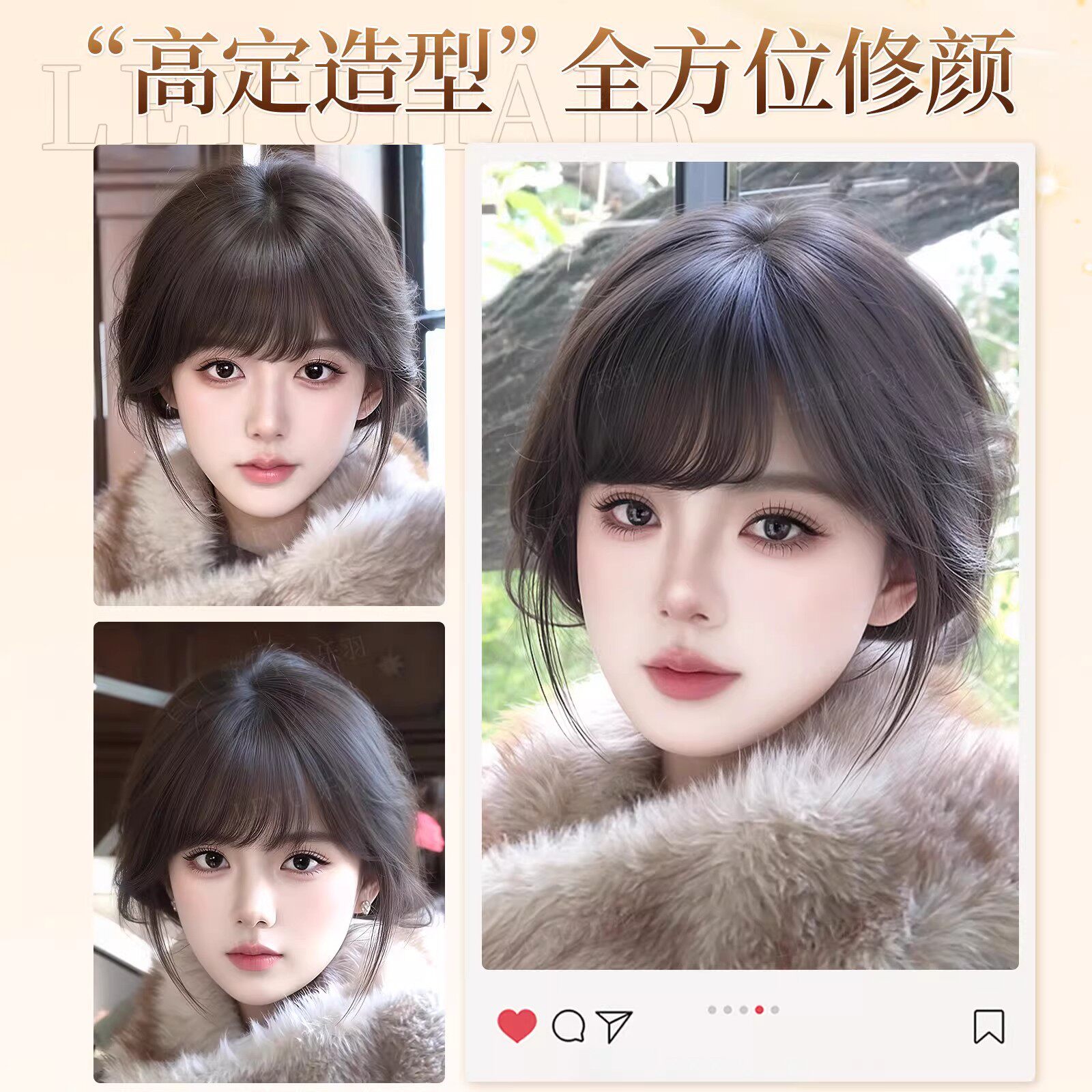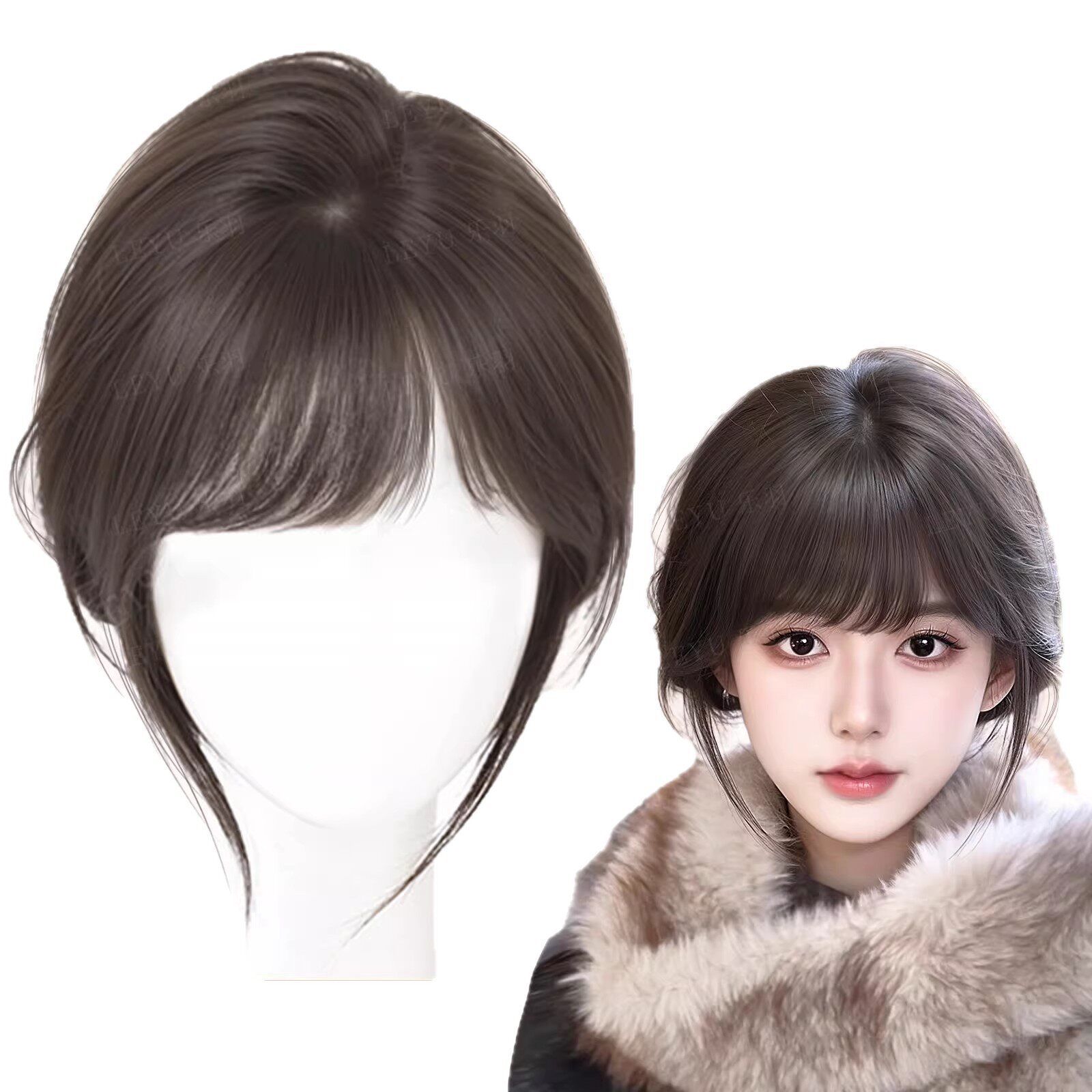 前额法式斜刘海假发女片头顶补发高颅顶神器遮白发假刘海八字遮盖
