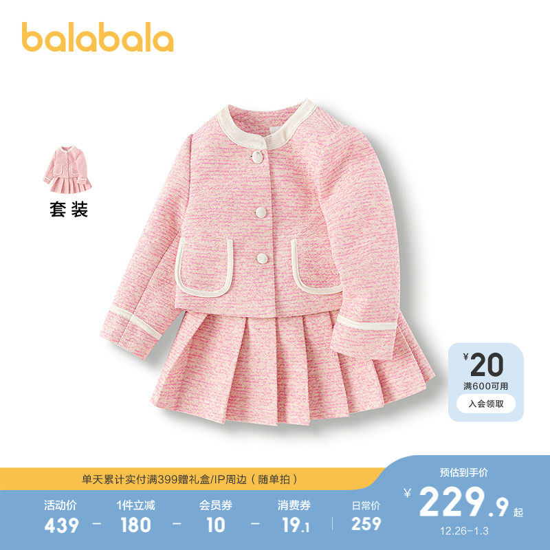 巴拉巴拉童装儿童百褶裙套装女童宝宝小香风两件套2025春秋保暖潮